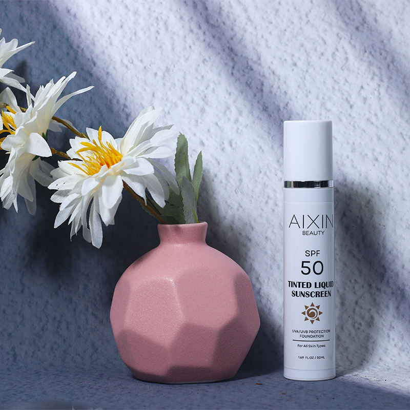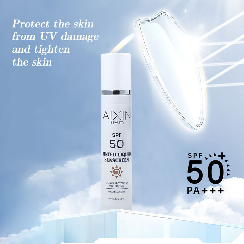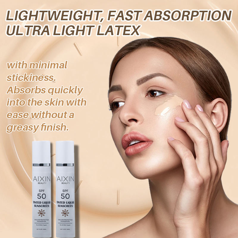 Aixin Loción Vegana Todo en Uno 50ml Base de Maquillaje con Tinte y Protector Solar de Amplio Espectro para Rayos UVA UVB Hidratante Solar