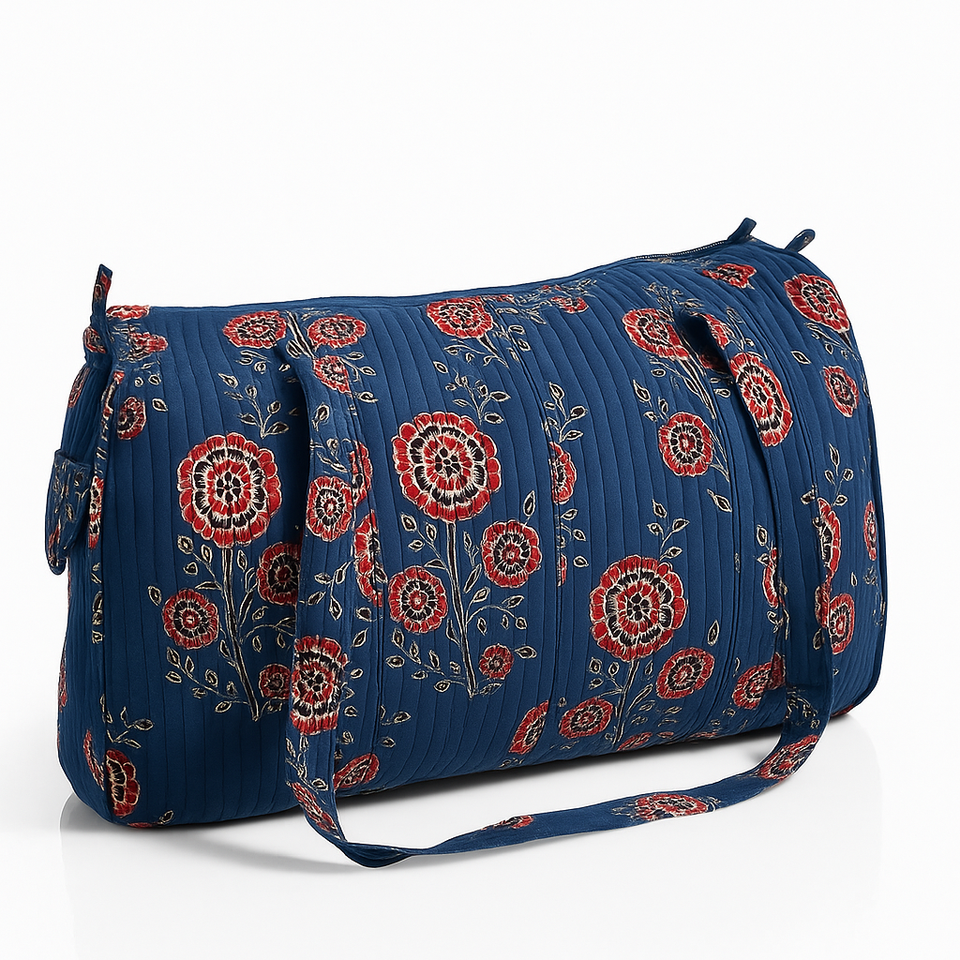 Bolsa de Viaje Ajrak de Algodón Estampada a Mano, Gran Capacidad, Ecológica, Táctica, de Alta Calidad, Duradera, Deportiva y de Lujo