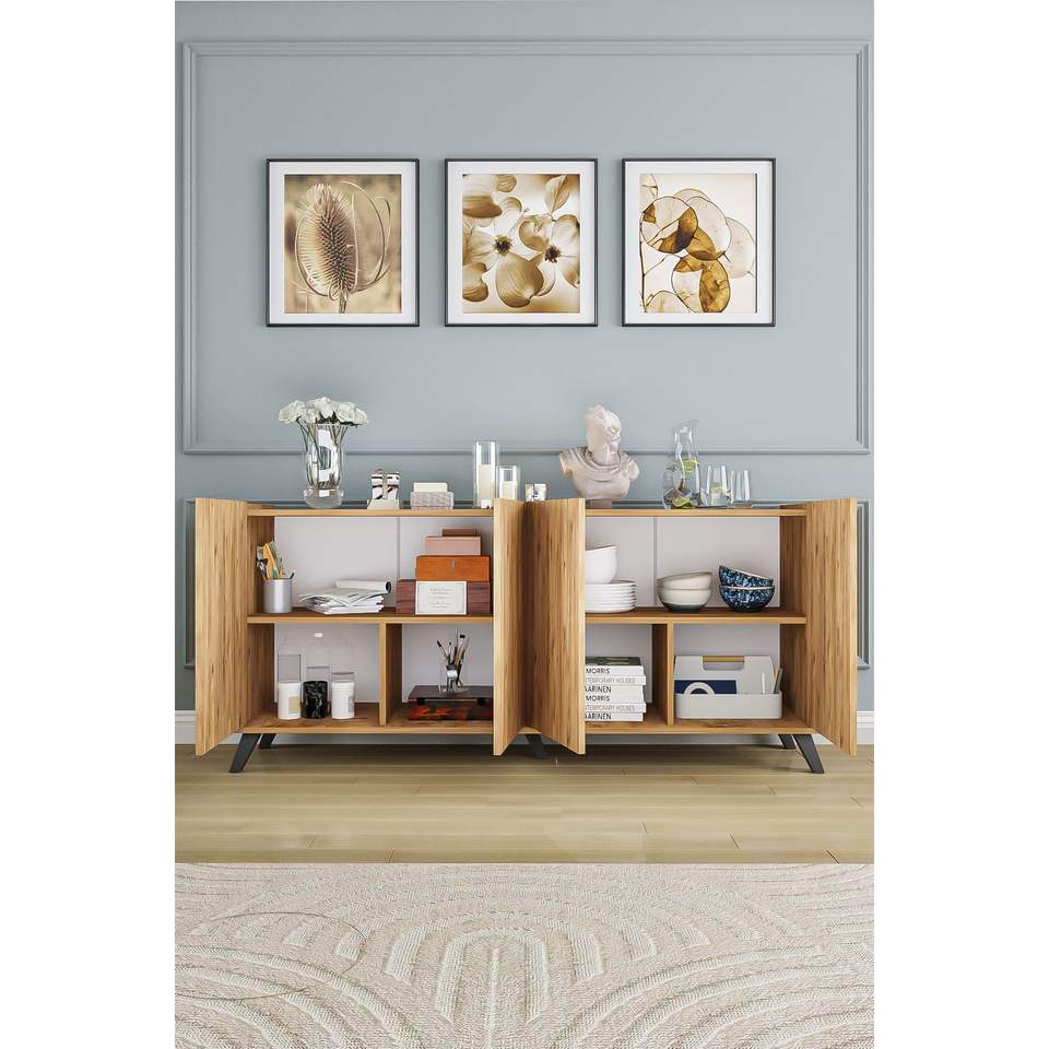 Akel Atlantic - Mueble de Madera con Consola de 4 Puertas y 180 cm, Aparador, Soporte para TV, para Comedor