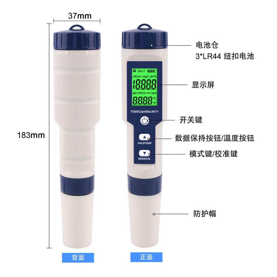 Akers 5 In 1 Water Quality Tester TDS EC PH Salinity Temperature Meter For Aquarium Seawater With Backlight
