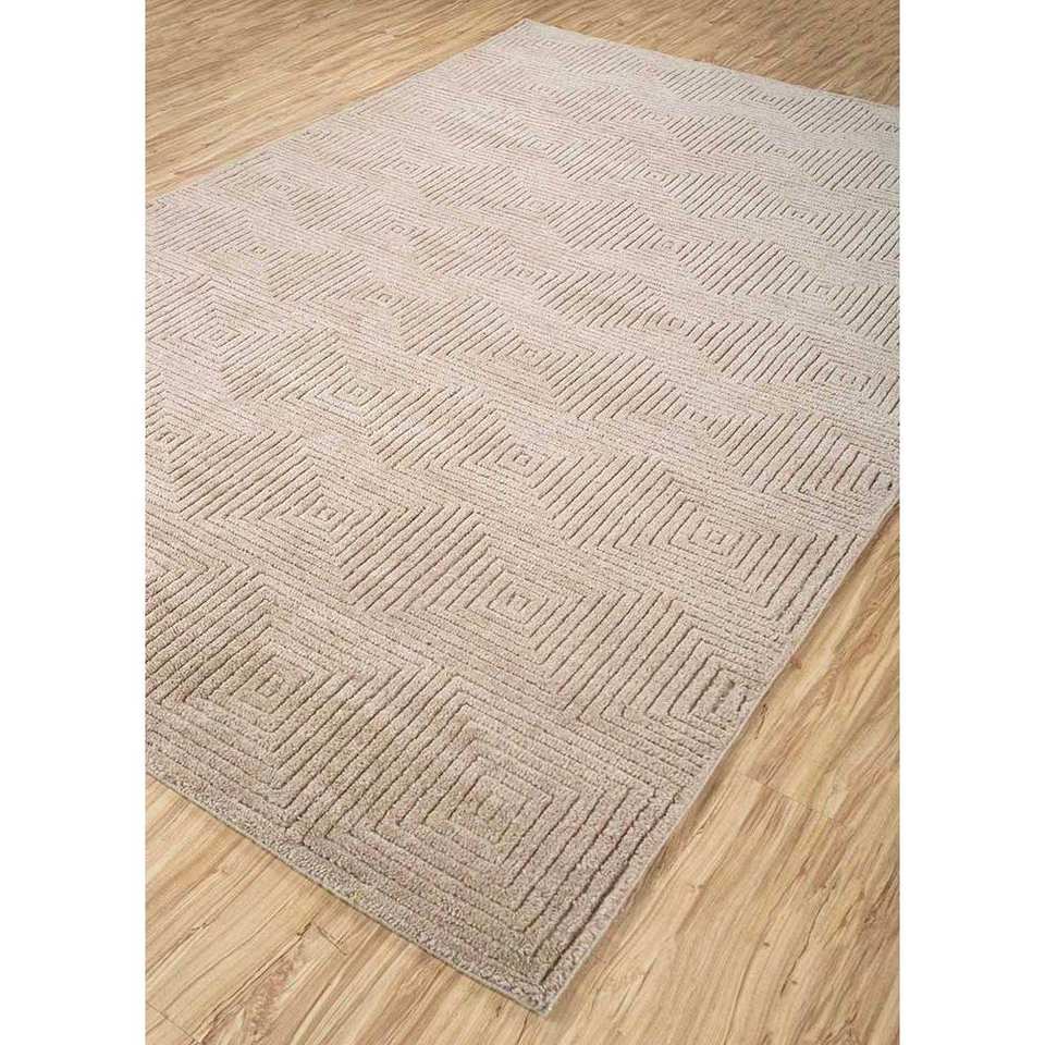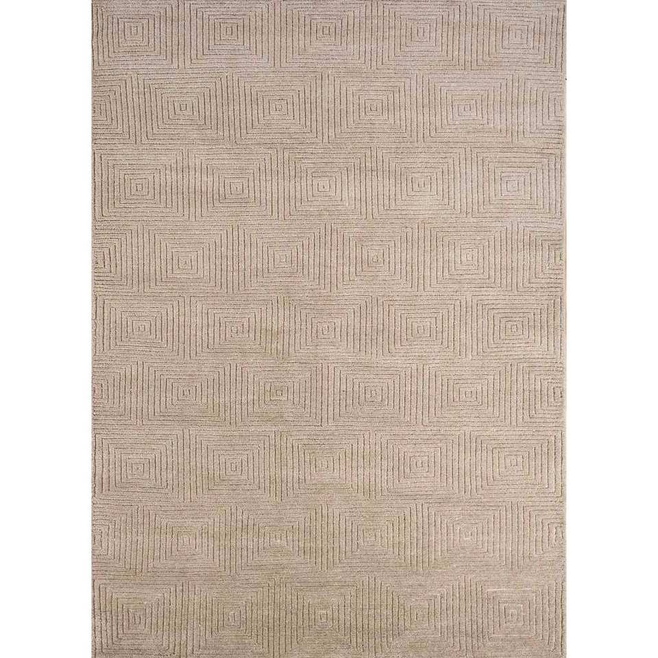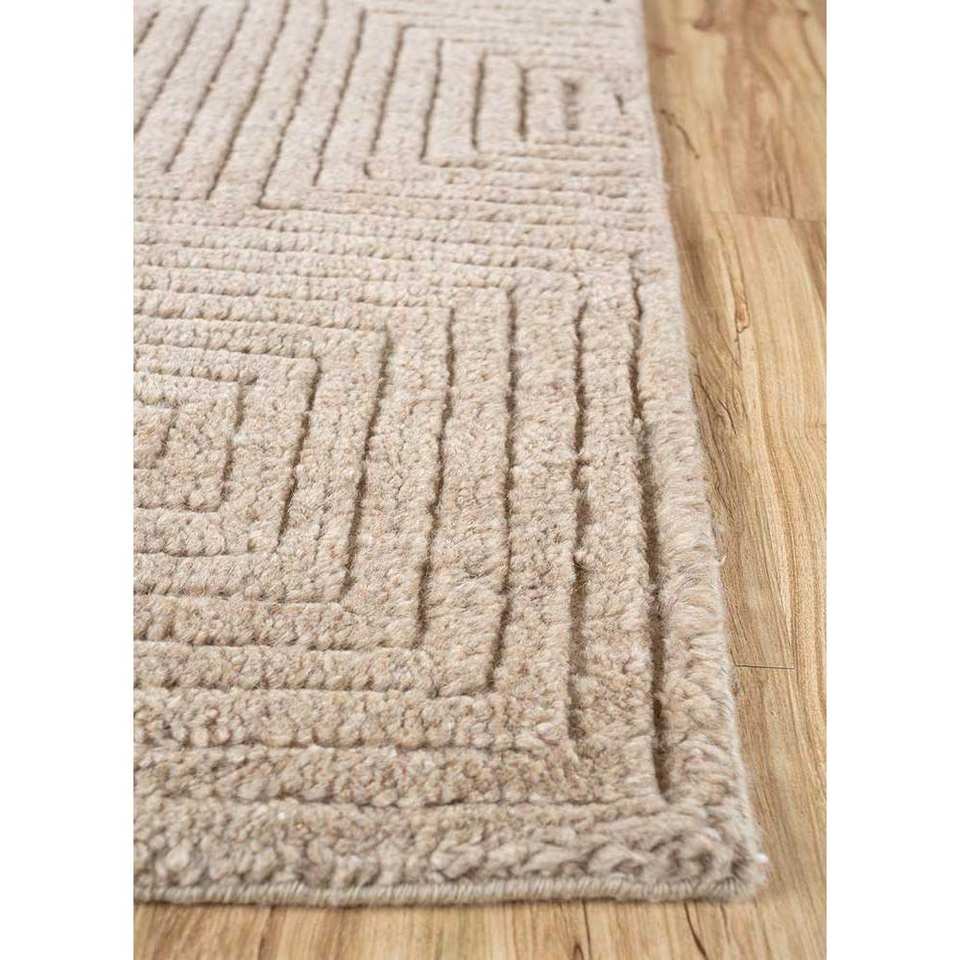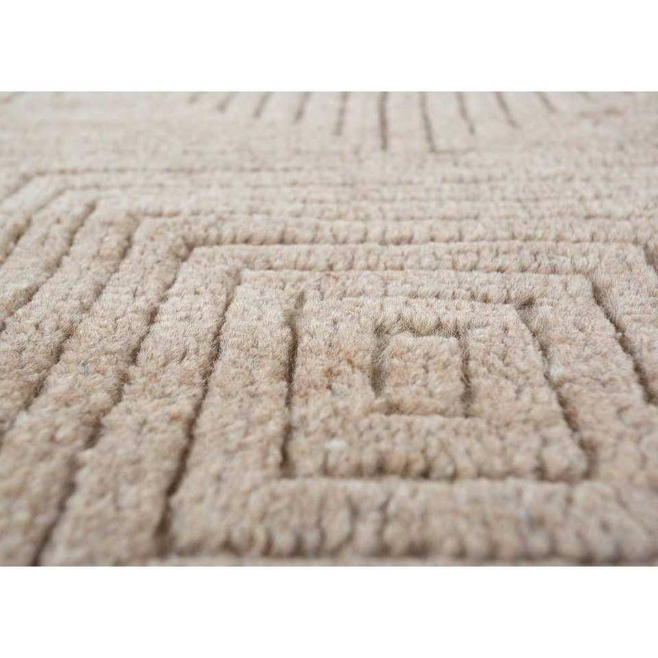 Alfombra de Lana Anudada a Mano Akwl-1217, Beige Marrón Geométrica para Sala de Estar, Alfombra de Yute Rectangular para Pasillo, Diseño Puzzle-Manifest