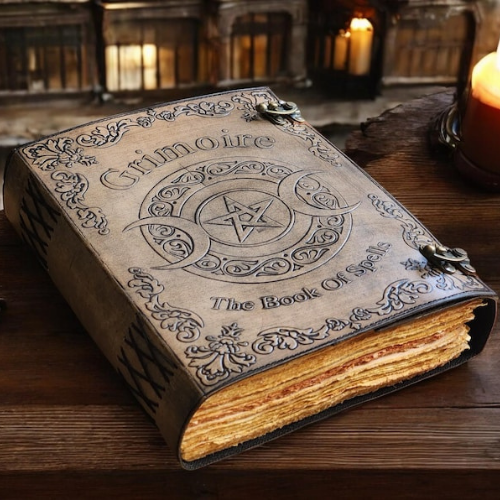 Product name:Hand Embossed Leather Grimoire Witchcraft Book of Shadows
