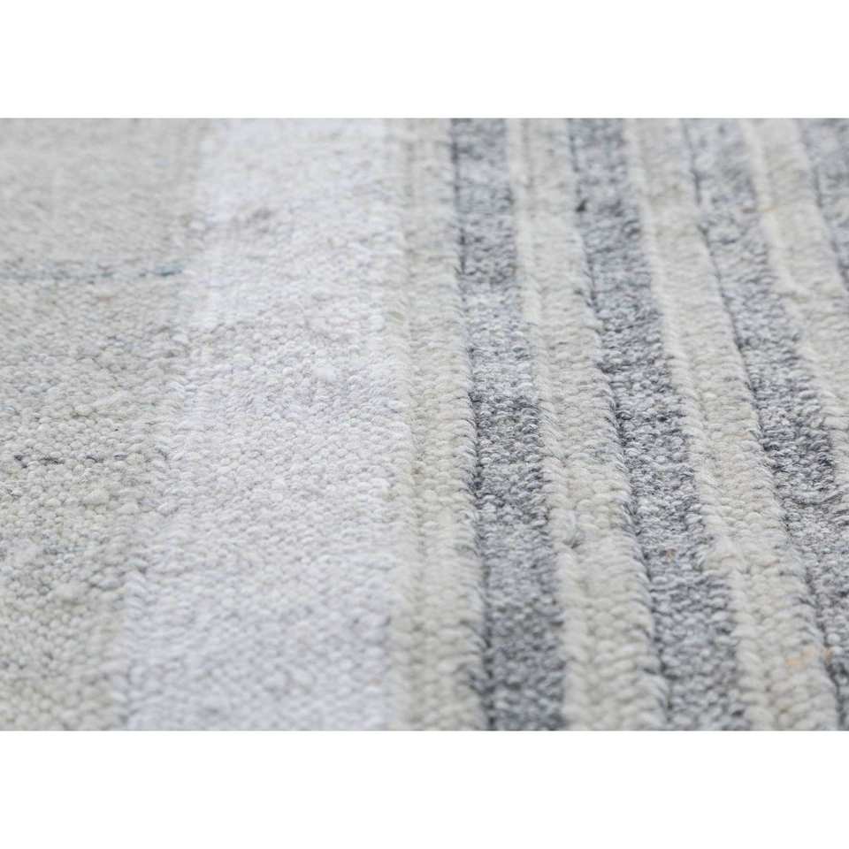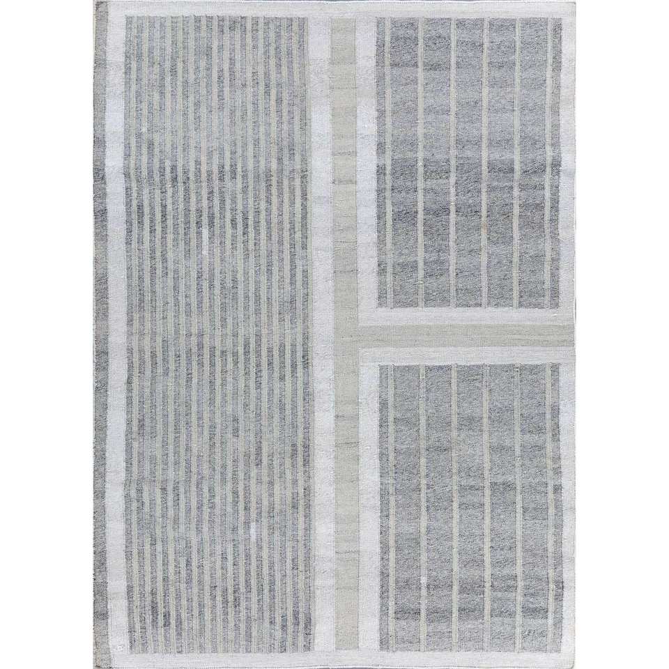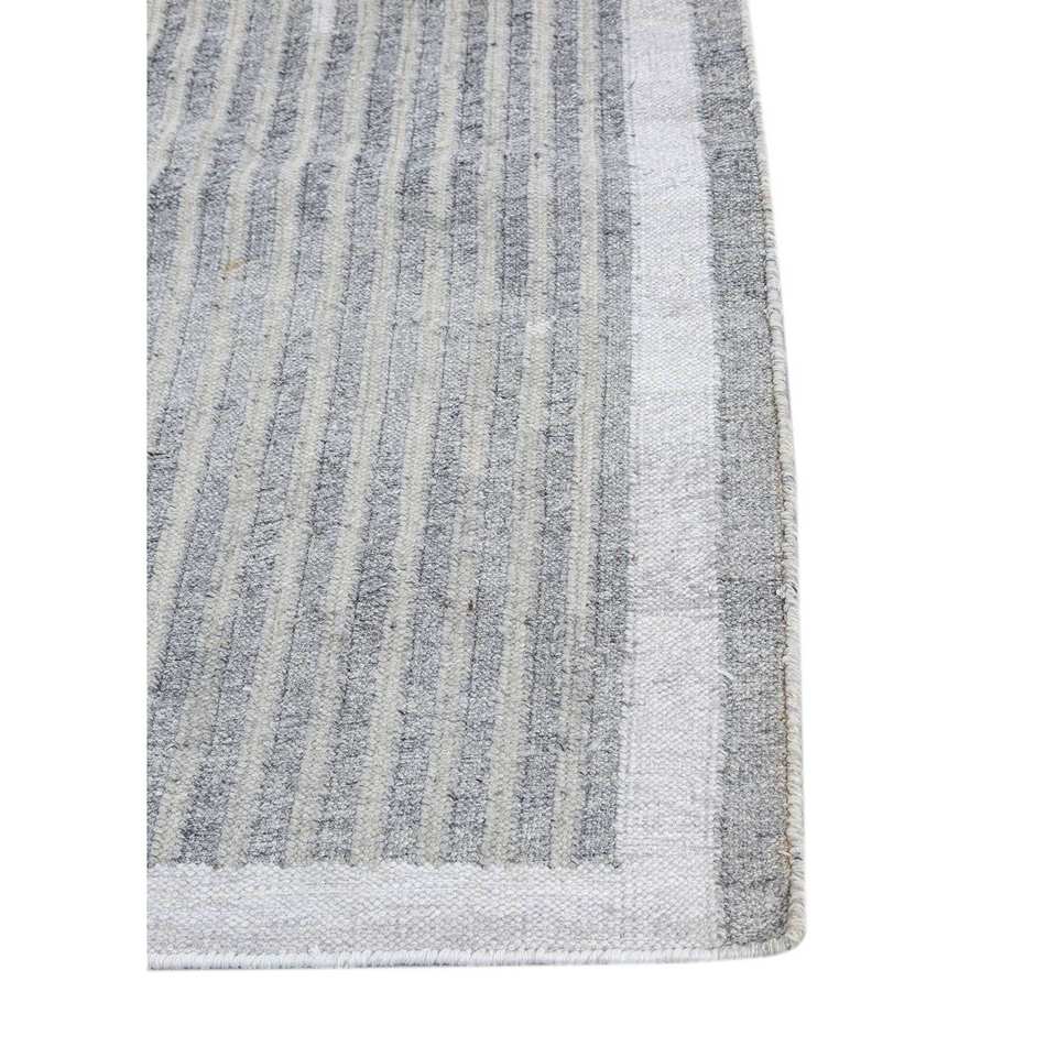 Alfombra Reversible de Poliéster con Tejido Plano ADPL-1104, Diseño Moderno a Rayas Grises y Negras para Hogar, Oficina, Playa y Viajes