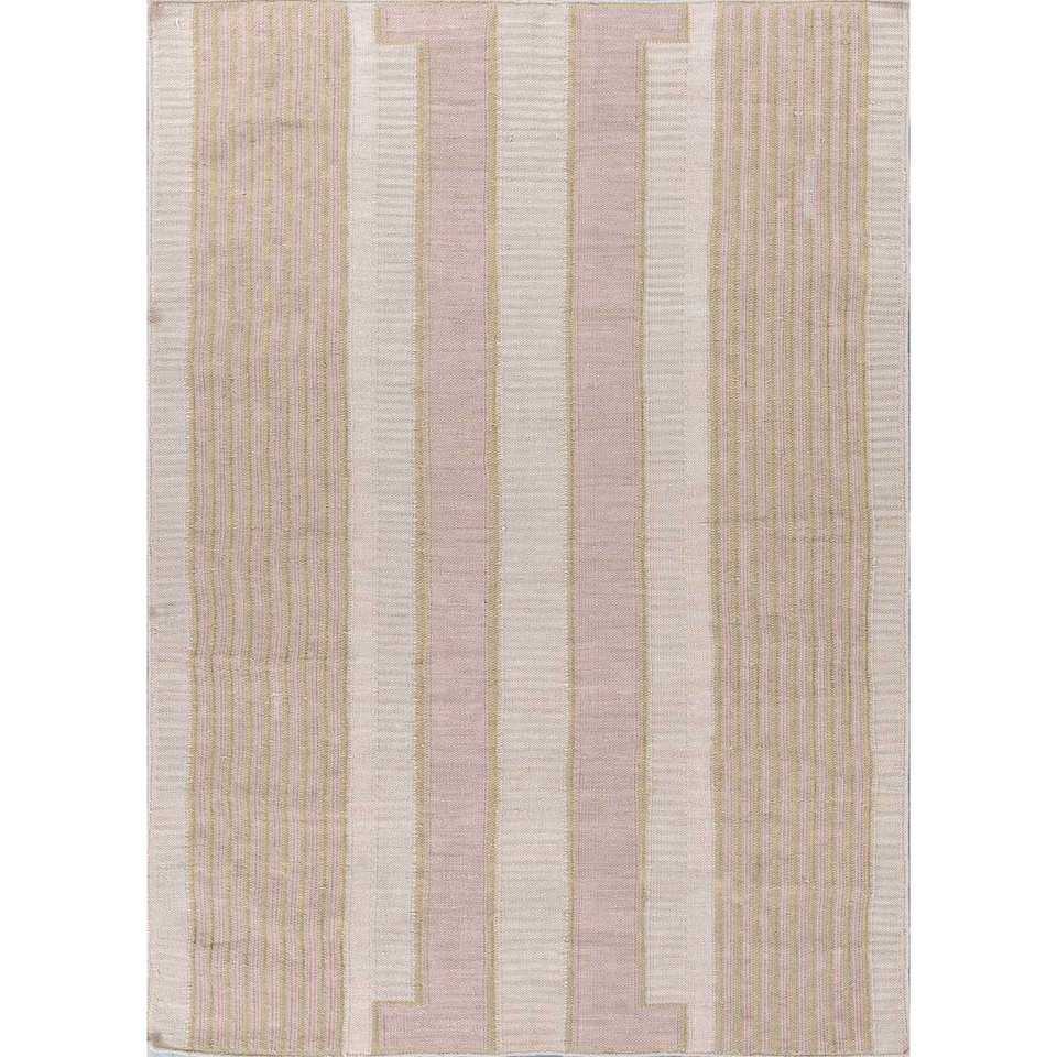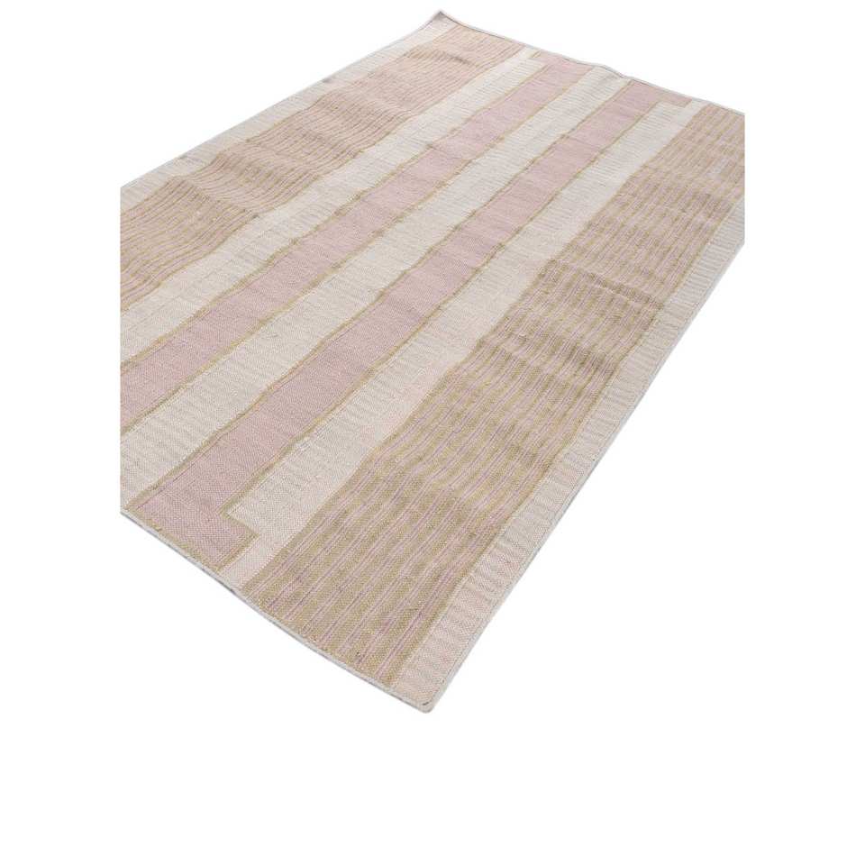 Alfombra de Poliéster a Rayas Al Fresco, Beige y Marrón, Tejido Plano para Uso Doméstico-ADPL-1111