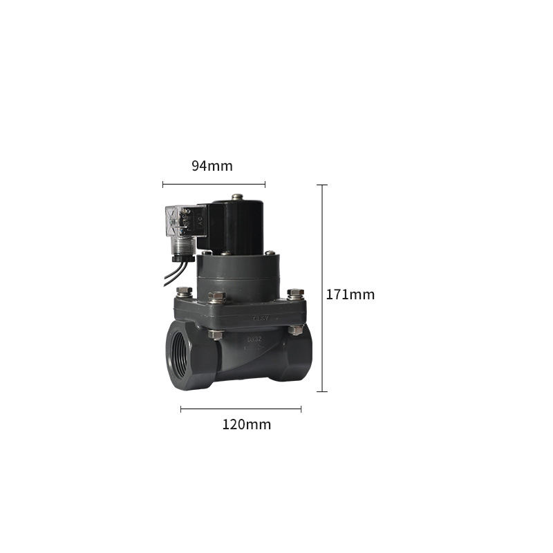Válvula solenoide Alahot OEM/ODM UPVC DN15 Válvula solenoide de arranque de presión cero de acción directa resistente a productos químicos para ácido