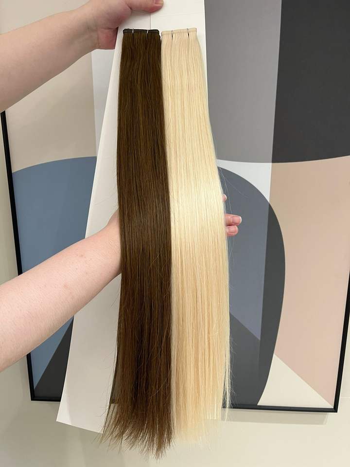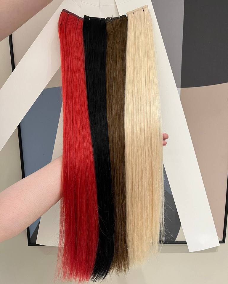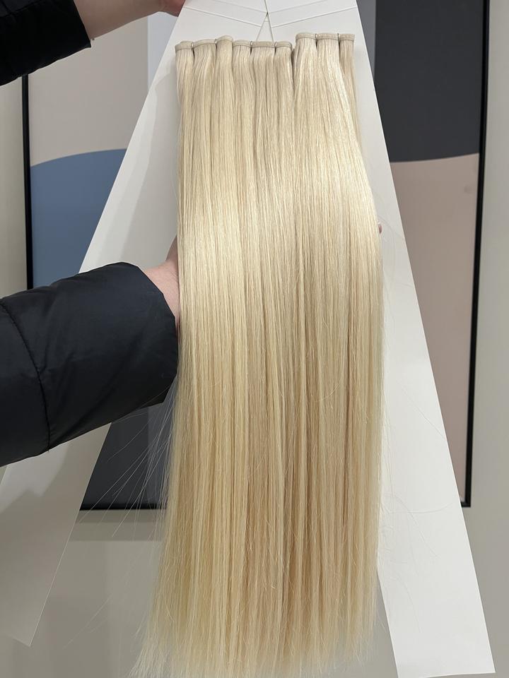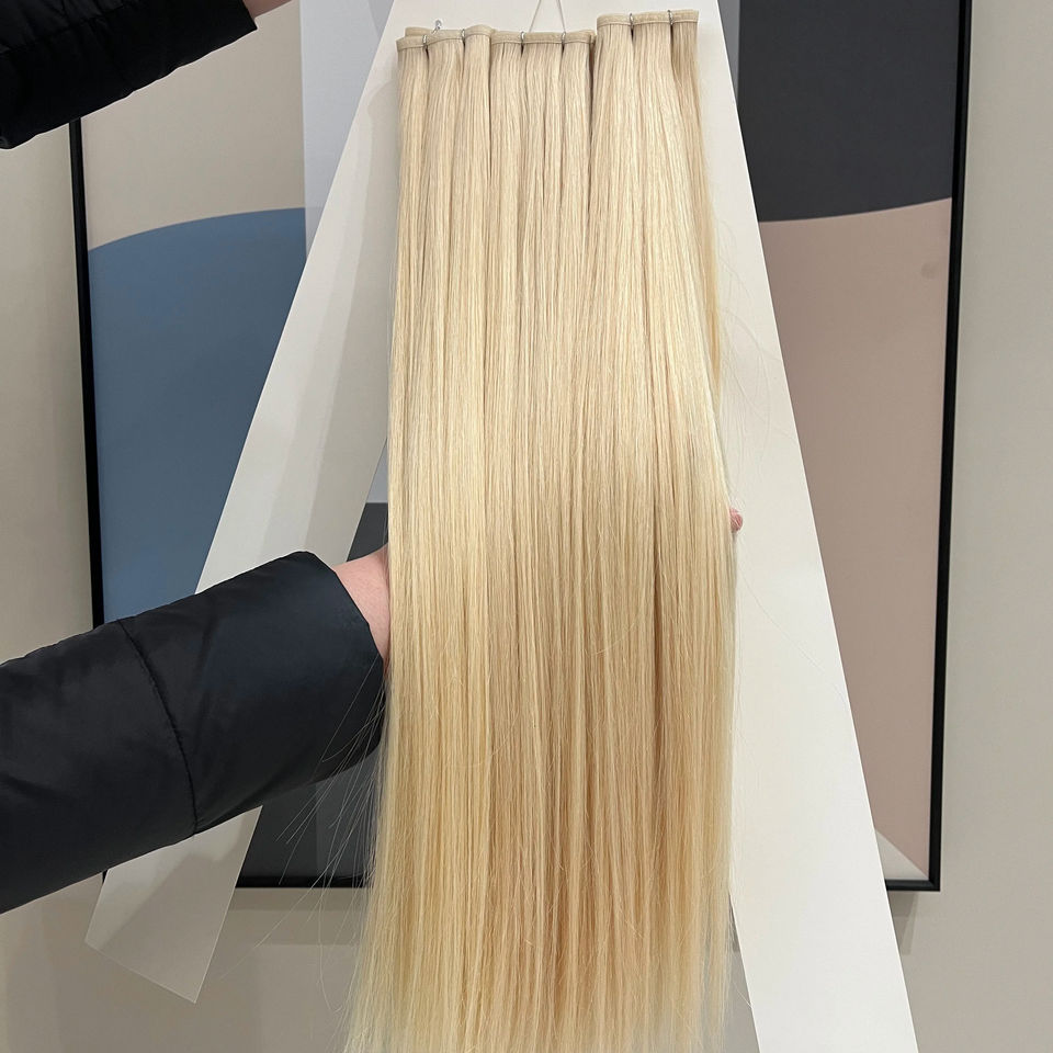 Alano Thin Invisible Double Drawn Russian Genius Weft Extensiones de cabello #60 Rubio Colorido Extensión de cabello de trama plana