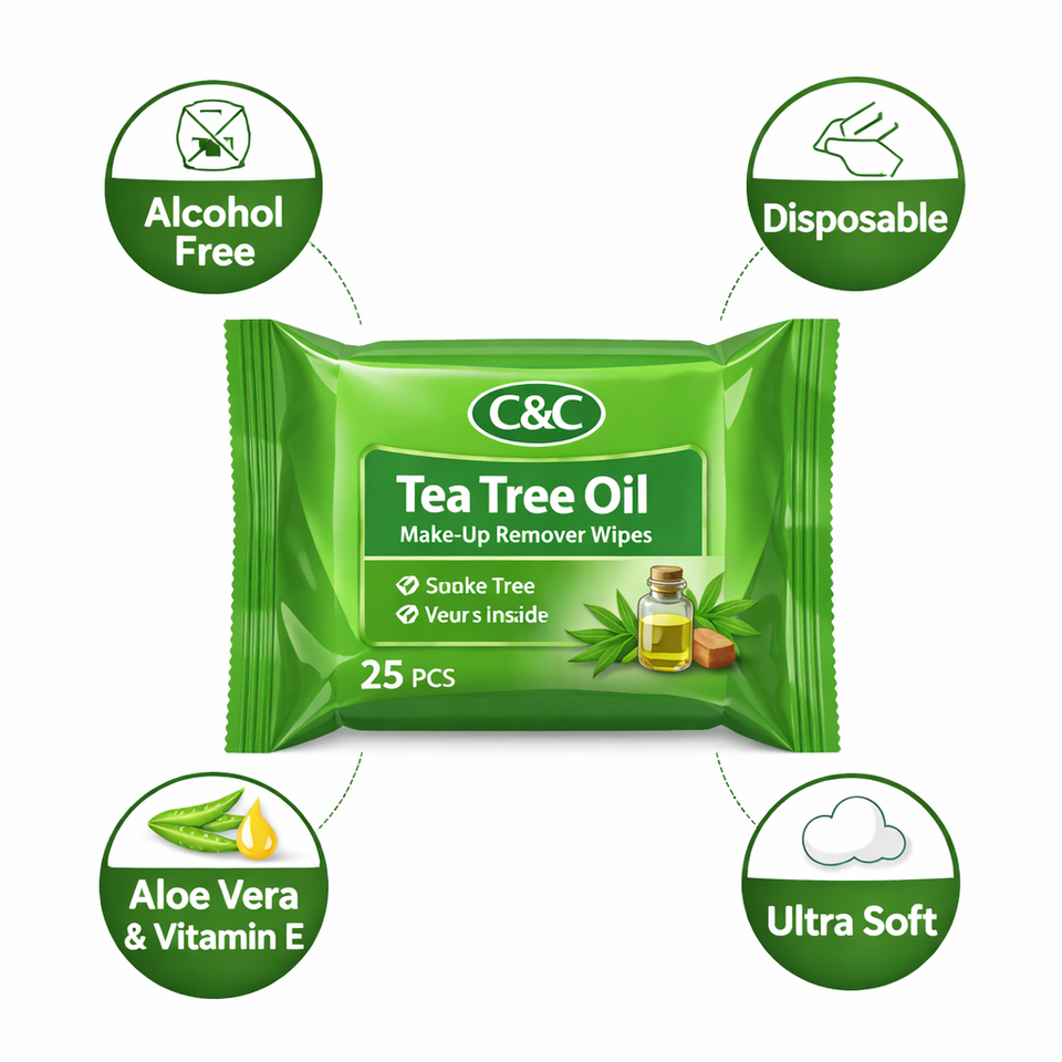 Toallitas Húmedas Limpiadoras de Árbol de Té Sin Alcohol para Rostro, Desmaquillantes, Eliminan el Maquillaje Resistente al Agua