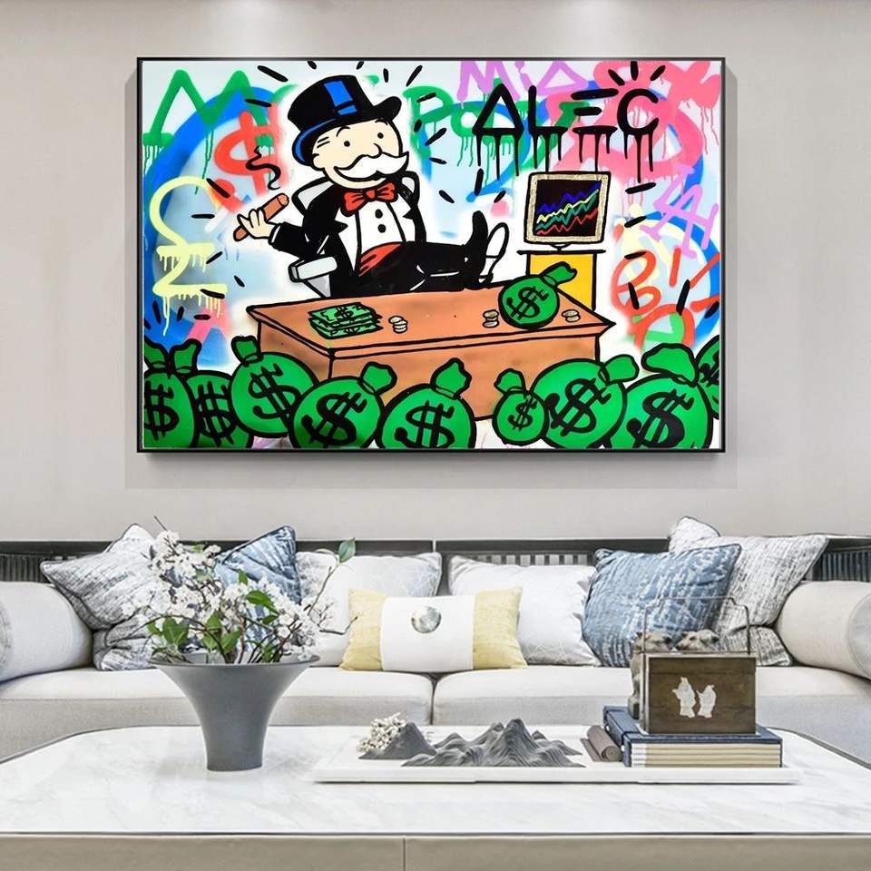 Alec Monopoly Rich Man Money Art lienzo pintura póster de dibujos animados e impresión Pop Wall Art imagen para la decoración del hogar de la sala de estar