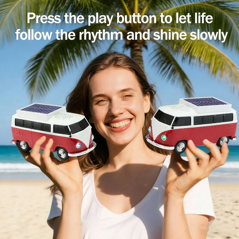 Altavoz Bluetooth Alecter Solar de Estilo Retro, Minibús, 66 mm, Batería de 1200 mAh, Alcance de 10 m, Sistema de Sonido Portátil con TF/Disco U/Radio