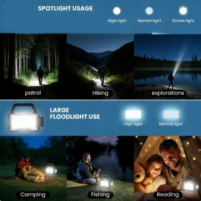 Linterna LED Recargable USB Solar Alecter, Resistente al Agua IP53, 1000 Lúmenes, con Batería de Respaldo, para Emergencias