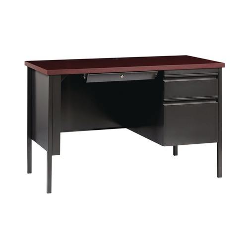 Alera 45 Pulgadas X 24 pulgadas X 29.5 Pulgadas Escritorio de Acero con Pedestal Único, Estilo Contemporáneo, Color Caoba/Carbón, Patas de Carbón, Rectangular, Melamina