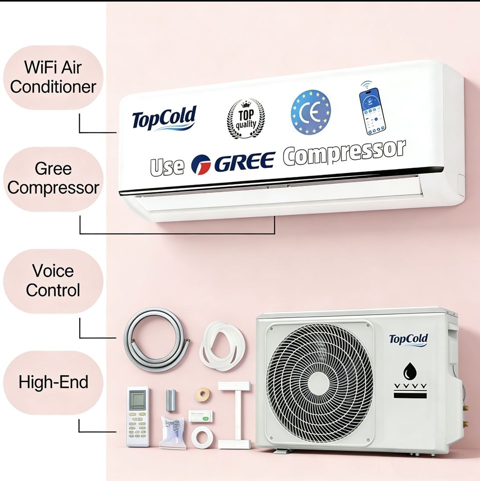 Aire Acondicionado Split con Control por Voz Alexa y Google Home, 9000 BTU, Inverter Inteligente para Apartamentos Modernos