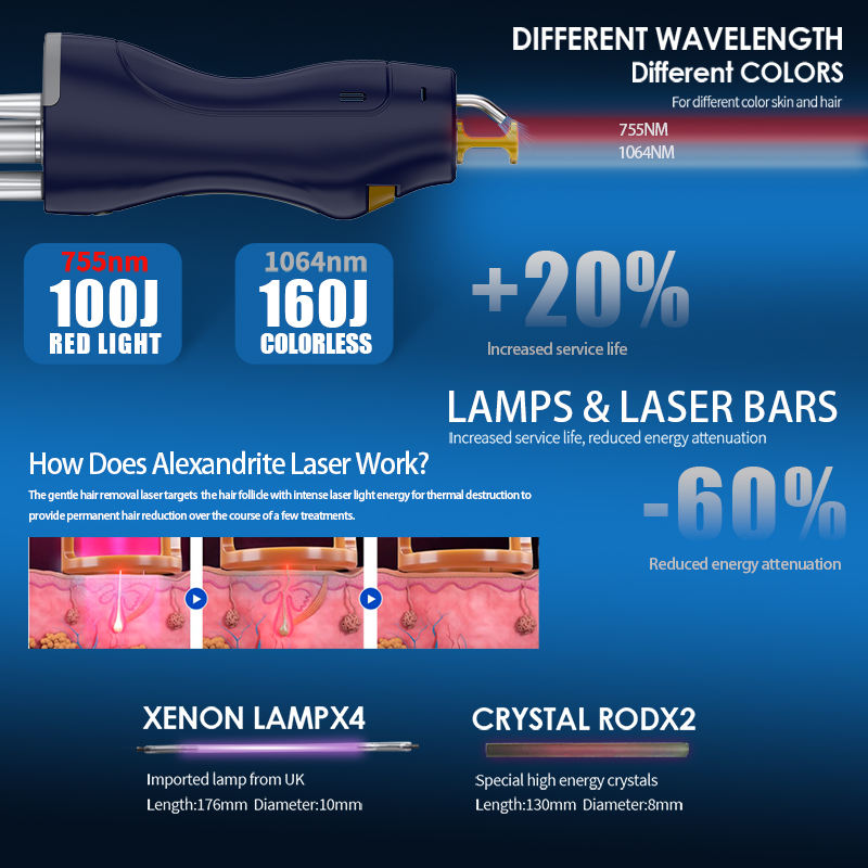 Máquina de Depilación Láser Alexander 755nm /1064nm/755+1064nm, Estética, Suave, Alexandrita, el Mejor Láser Alex