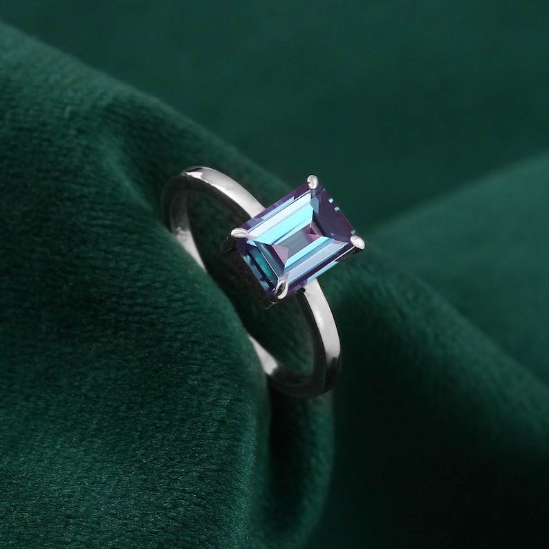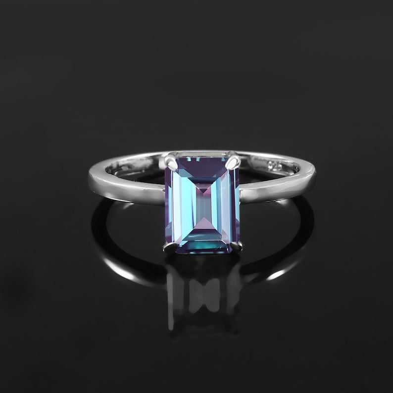 Anillo de Compromiso de Plata de Ley con Alejandrita que Cambia de Color, Certificado IGI, Corte Esmeralda Art Deco, Joyería Hecha a Mano, Regalo para Ella