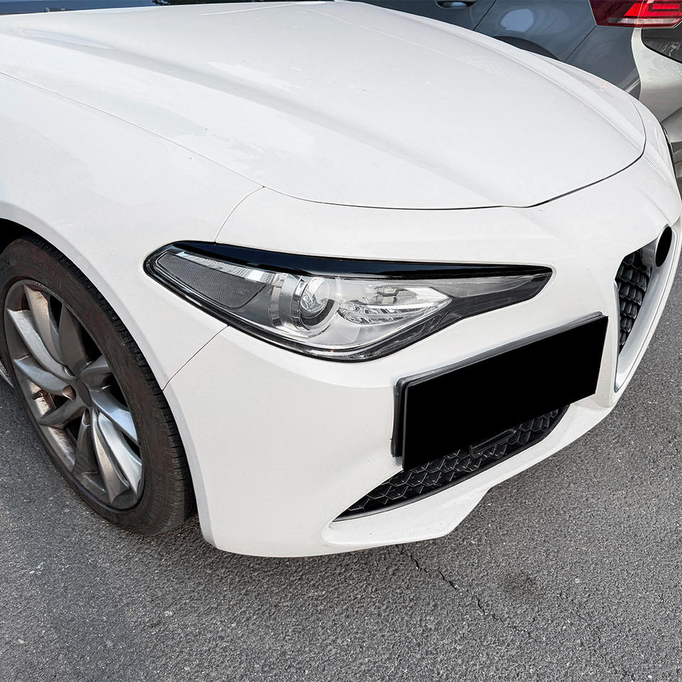 Pegatinas para Cejas de Faros Delanteros Alfa Romeo Giulia, Textura de Fibra de Carbono Negro Piano, Calcomanía para Carrocería ABS, 2015+