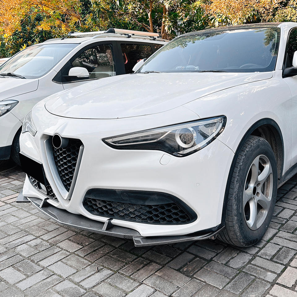 Divisor de Parachoques Delantero para Alfa Romeo Stelvio, Color Negro Piano con Textura de Fibra de Carbono, 2017+, Modificación Exterior de ABS