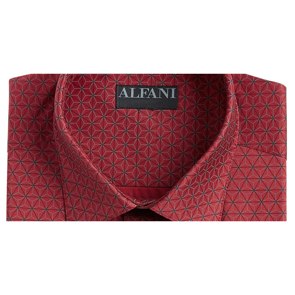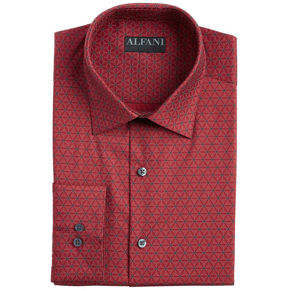 Camisa de Vestir Alfani para Hombre, Alfatech Performance Stretch, Estampado Geométrico, Corte Clásico/Regular, Ajuste Slim, Antiarrugas, Popelina Roja, Talla 32X22, ODM