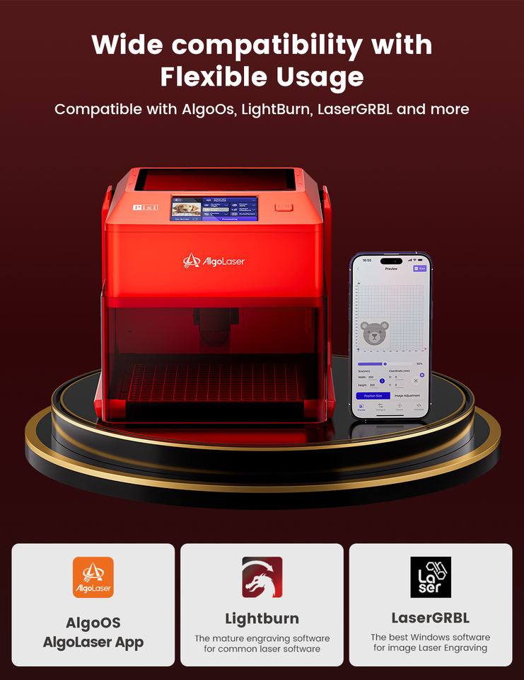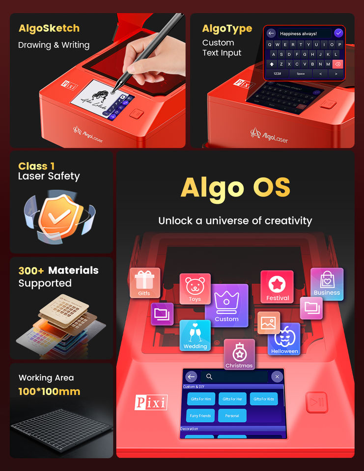 Máquina de Impresión para Fundas de Teléfono Algolaser Pixi Grabadora Láser de 5W para Fundas de Móvil Llaveros de Cuero Acrílico Proyectos DIY Pequeñas Empresas