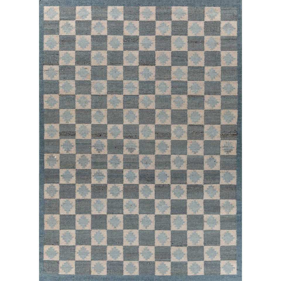 Alfombra de Lana Azul Alhambra de Gran Tamaño, Rectangular 9x12, con Patrón Geométrico para Entrada, Pasillo o Habitación - Modelo ADWL-13240