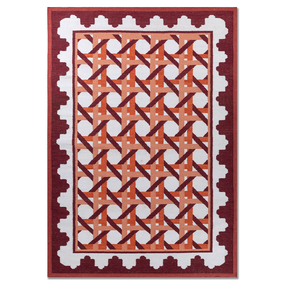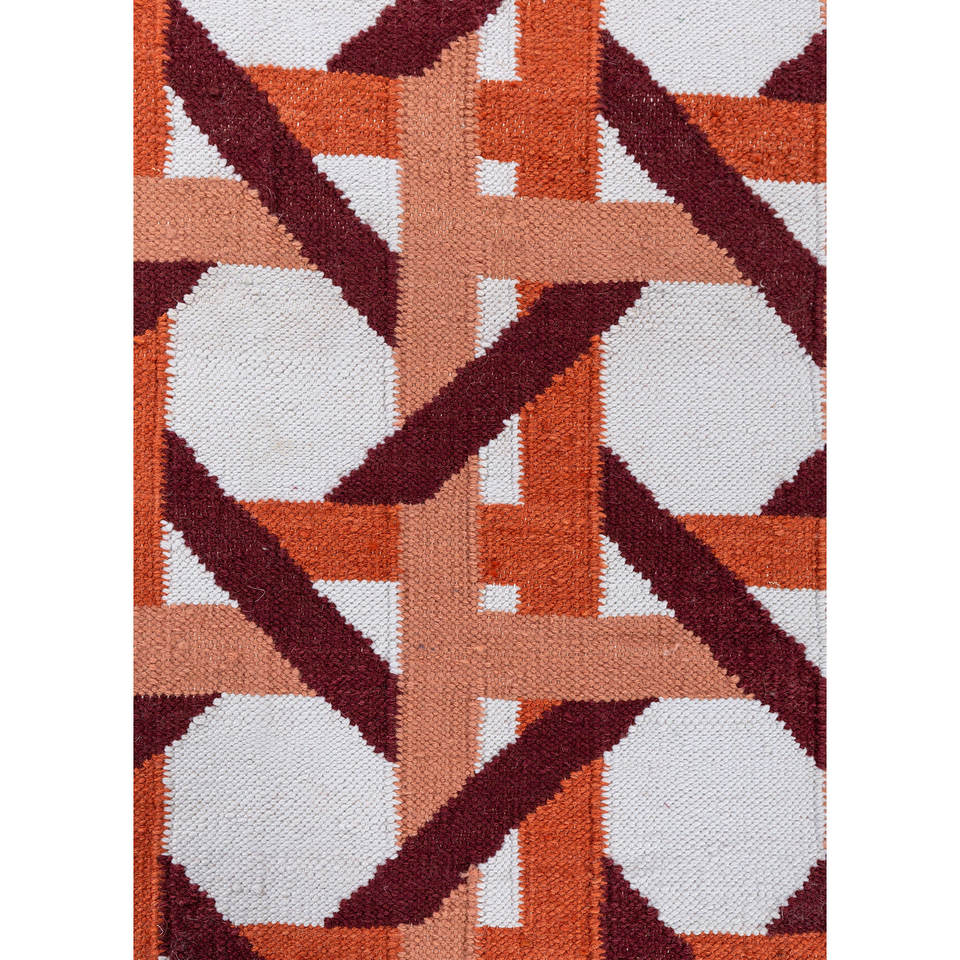 Alfombra Clásica de Lana Alhambra Roja Naranja Hecha a Mano con Tejido Plano para el Hogar ADWL-13304 Modelo Rectangular para Pasillo y Dormitorio Alfombra de Yute