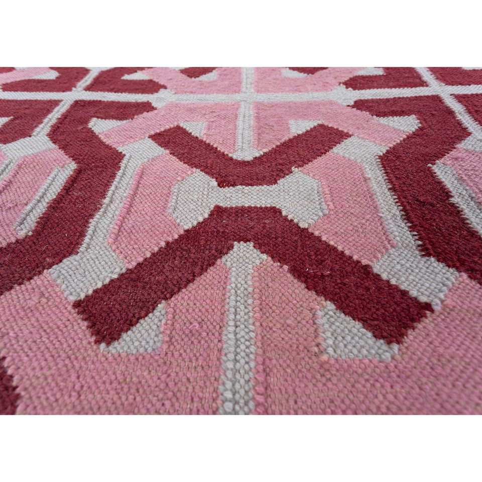 Alhambra - Alfombras Clásicas de Lana, Tejido Plano Geométrico Rojo Naranja para el Hogar - ADWL-13211, Alfombras Rectangulares de Yute para Pasillo y Dormitorio