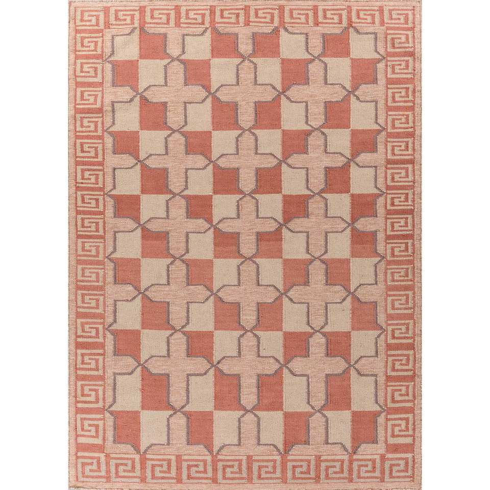 Alfombras Clásicas de Lana Alhambra en Rojo y Naranja con Patrón Geométrico Oriental Rectangular para Sala de Estar y Dormitorio - Modelo ADWL-13171