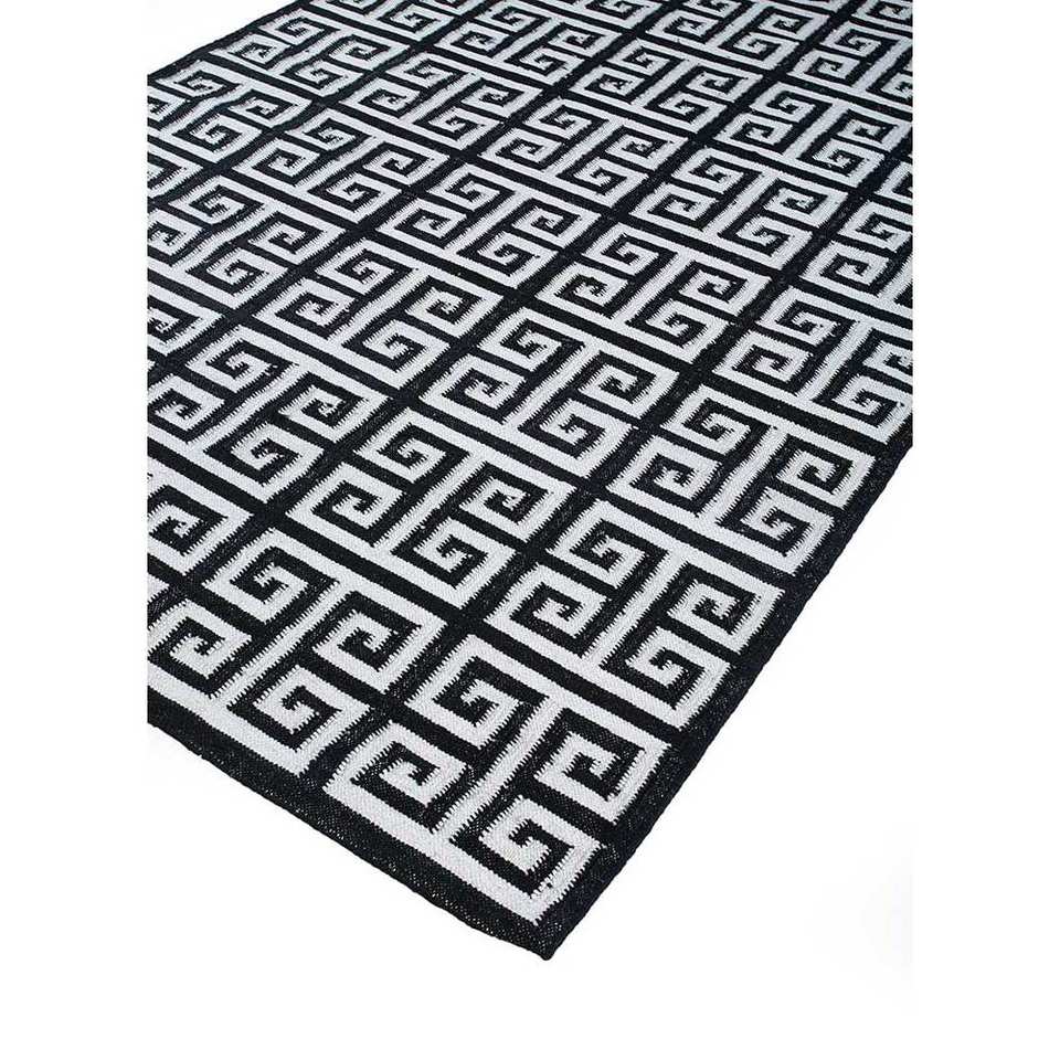 Alfombras Geométricas de Lana Alhambra en Gris y Negro, Tejido Plano para el Hogar, Alfombra Rectangular de Yute para Habitación y Dormitorio, Modelo DWRM-113