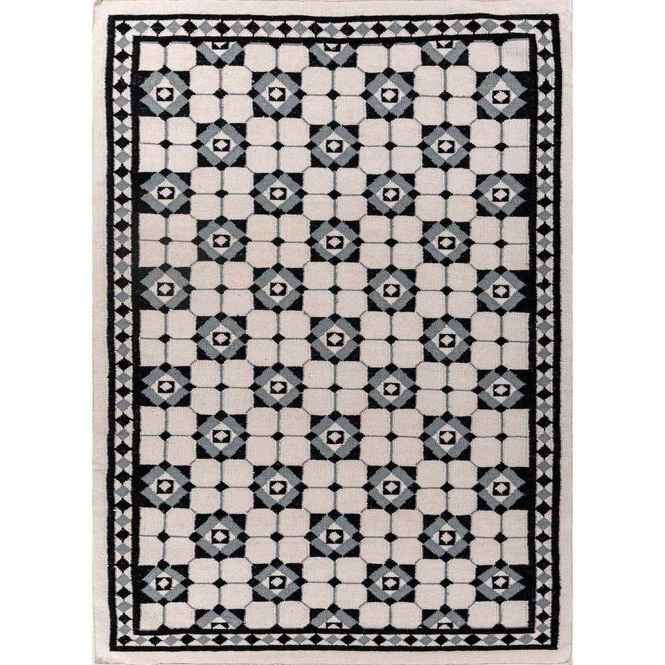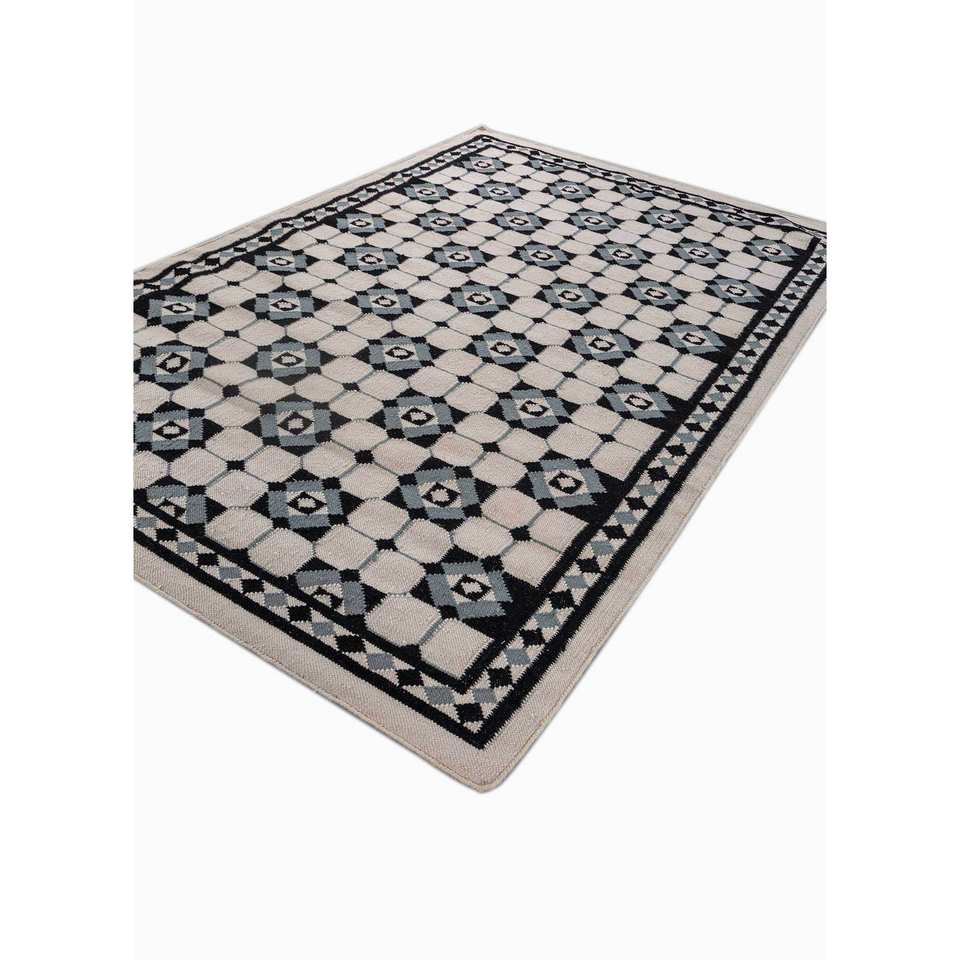 Alfombras de Lana Tejidas Planas Alhambra Ivory, Alfombras Rectangulares Geométricas Hechas a Mano para el Hogar, Sala de Estar, Pasillo, para Adolescentes, Viscosa, Bambú, Seda