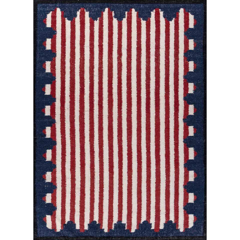 Alfombra de Lana Tejida Plana Alhambra Ivory con Patrón de Rayas para Uso Doméstico-ADWL-13202 Alfombra para Exteriores Hecha a Mano en India de la Mejor Calidad