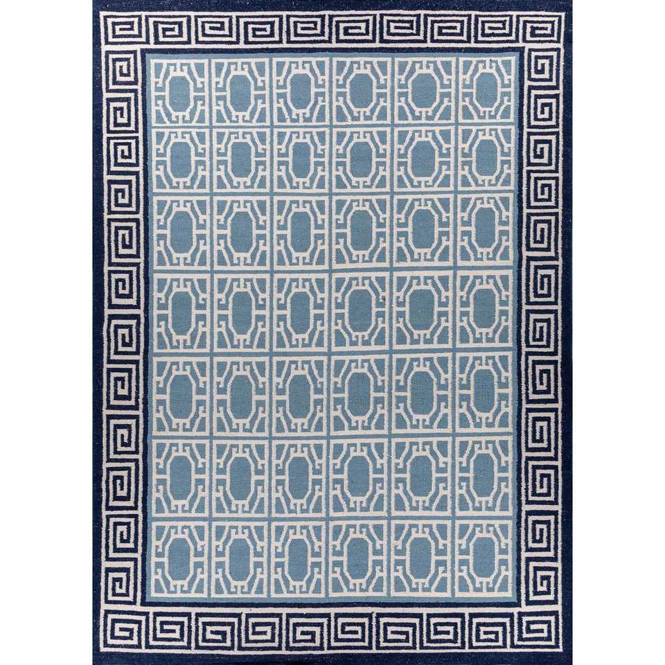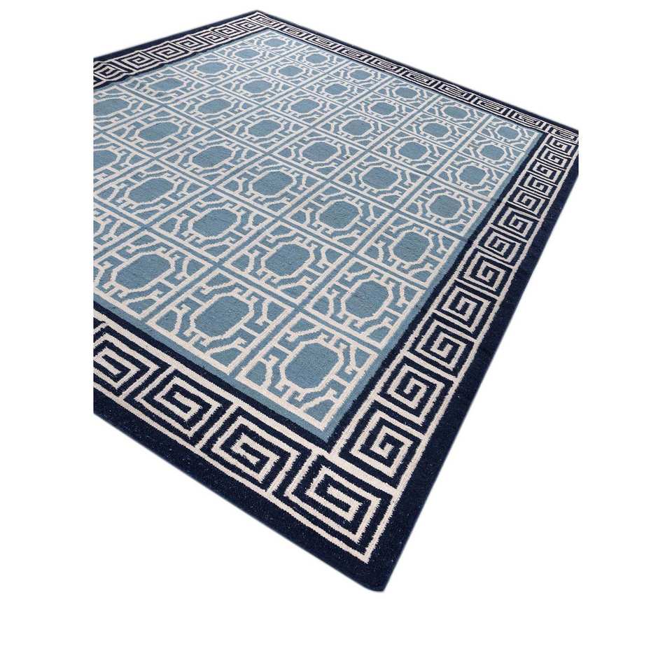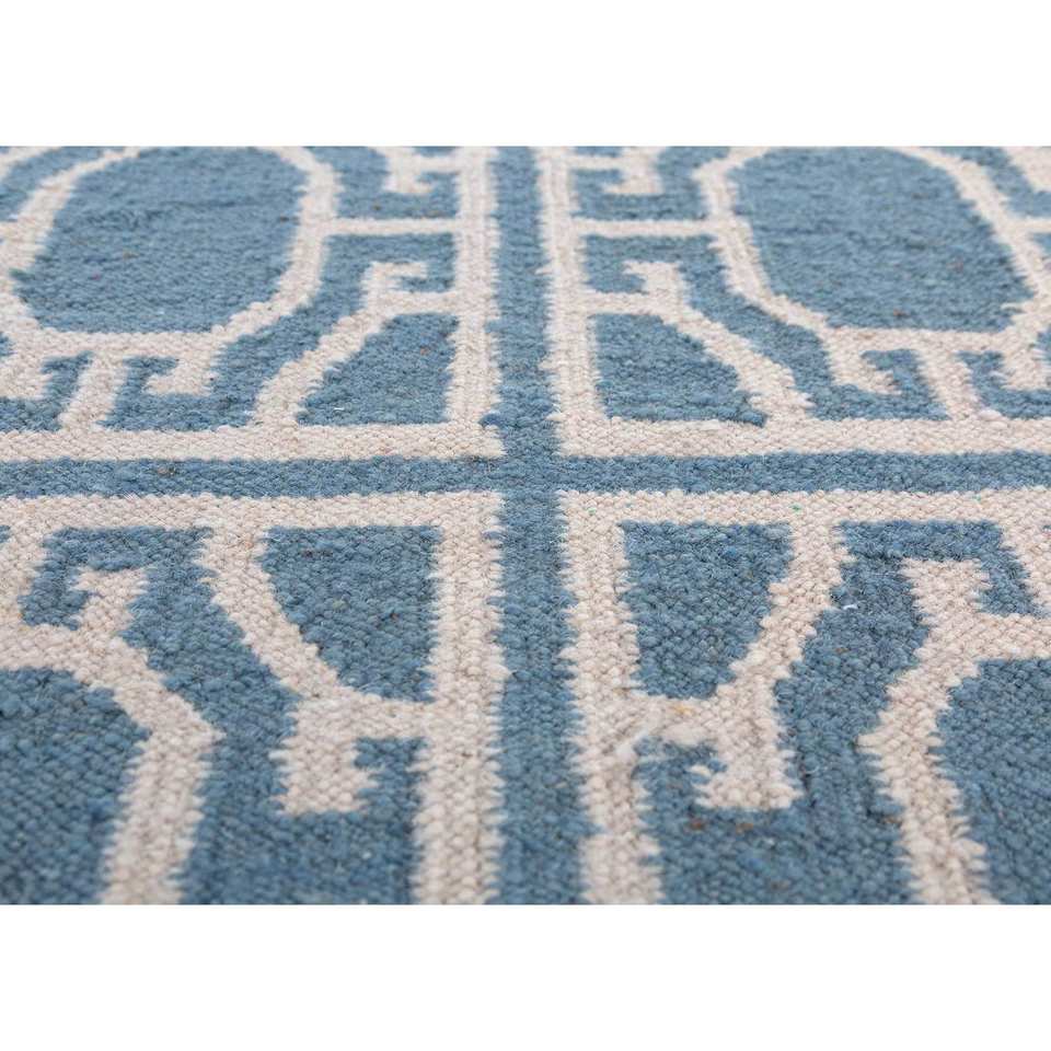 Alfombra de Lana Tejida Plana Alhambra Ivory con Patrón Geométrico para Decoración del Hogar-ADWL-13209