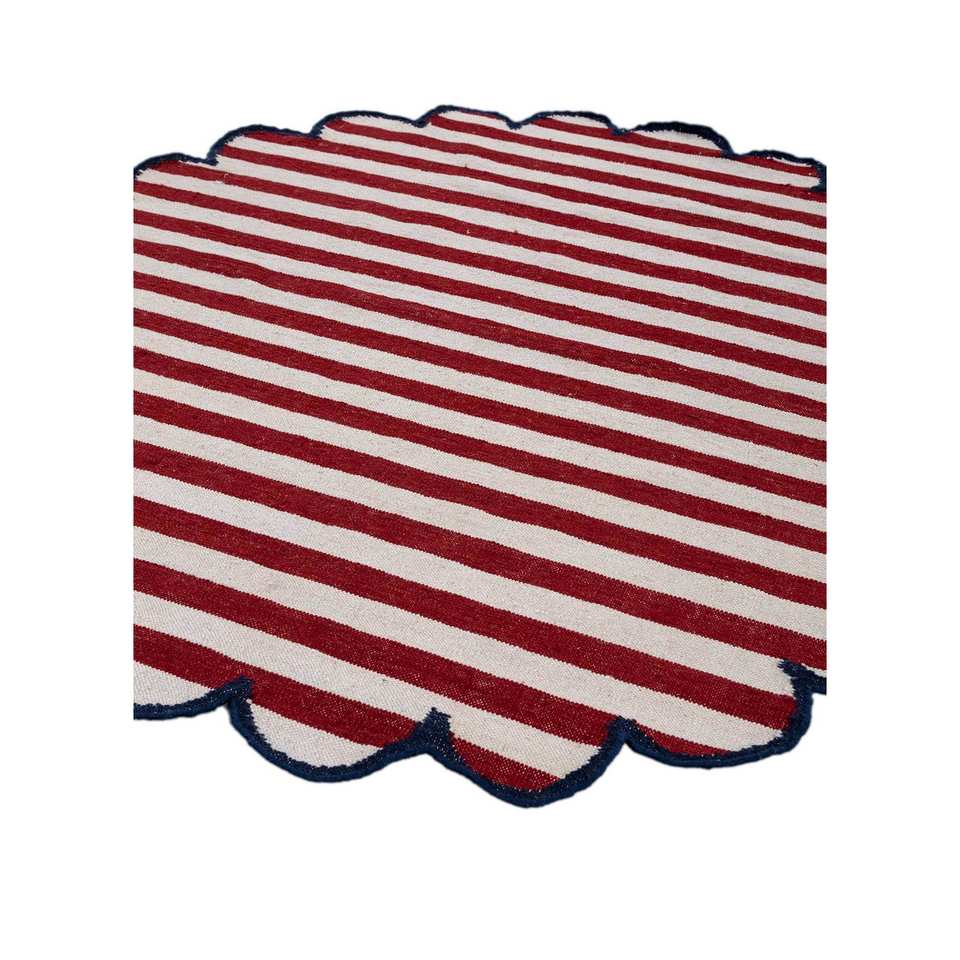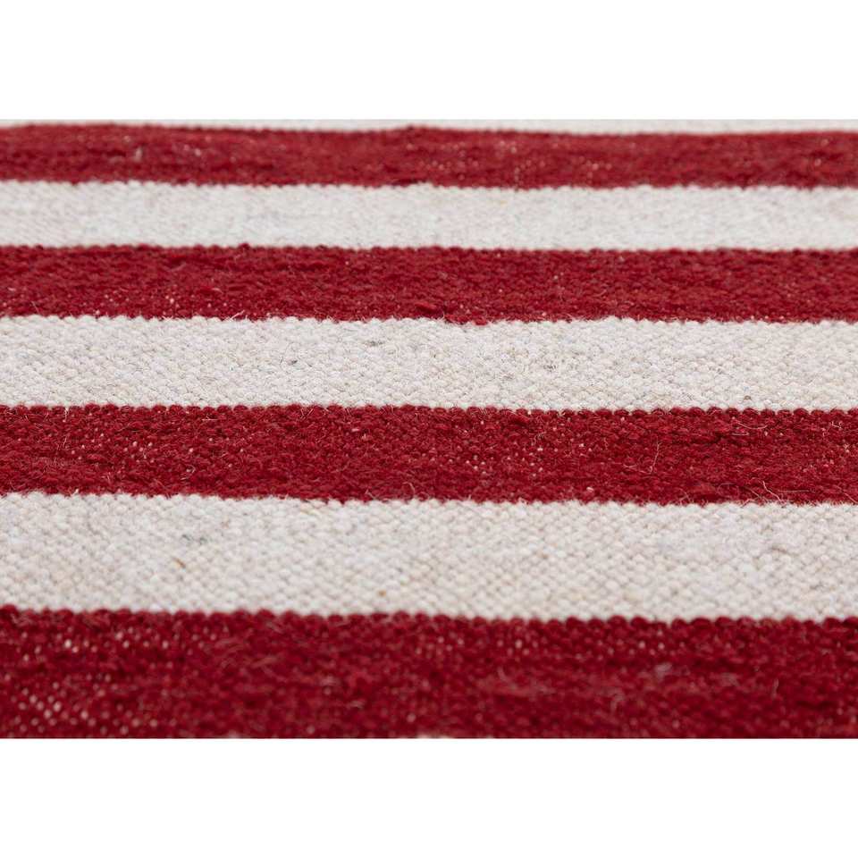 Alfombra de Lana Tejida Plana Alhambra Ivory, Hecha a Mano, con Patrón de Rayas Kilim, para el Hogar, Pasillo, Sala de Estar o Dormitorio - Modelo ADWL-13197