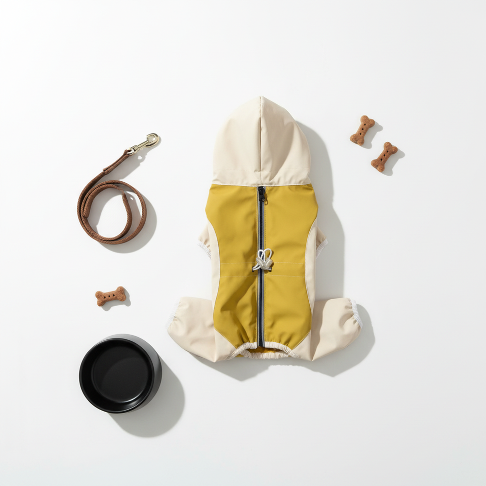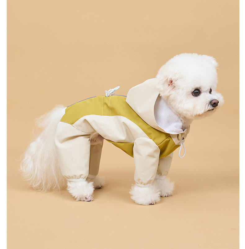 Mono de cuatro patas con bloques de color para perros, ropa para mascotas, chaqueta impermeable de poliéster para exteriores, AliExpress Cross-Border