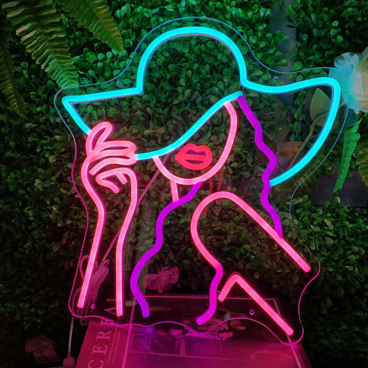 Letrero LED de neón Alien Bar, acrílico verde con diseño de mujer, para decoración de pared en el hogar, oficina, tiendas, empresas, hospitales, alimentado por USB