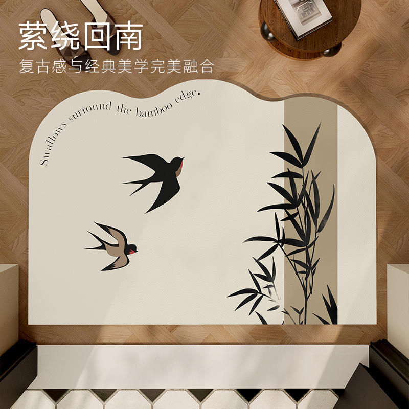 Tapete de Entrada con Diseño de Extraterrestre, PVC, Patrón Novedoso, Color Crema, Lavable a Máquina, para Uso Doméstico, Verano 2024