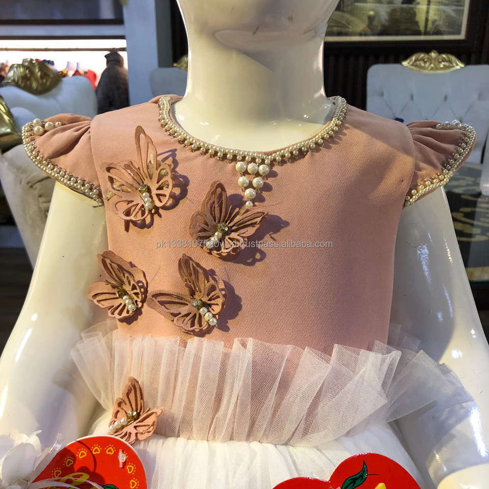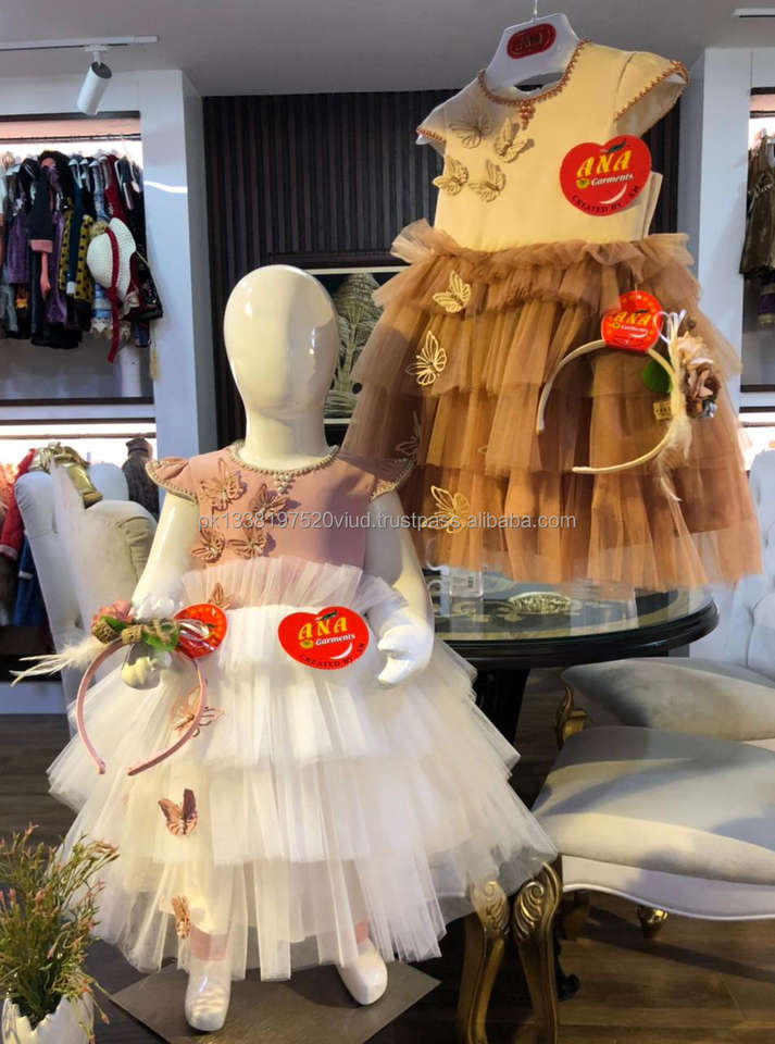Conjunto de vestido de lana con diseño de mariposa elegante para todas las edades para niños, incluida la diadema, trabajo con patrón Floral para fiestas, temporada de primavera