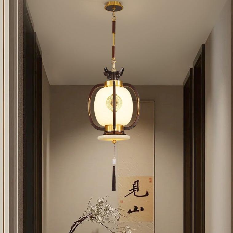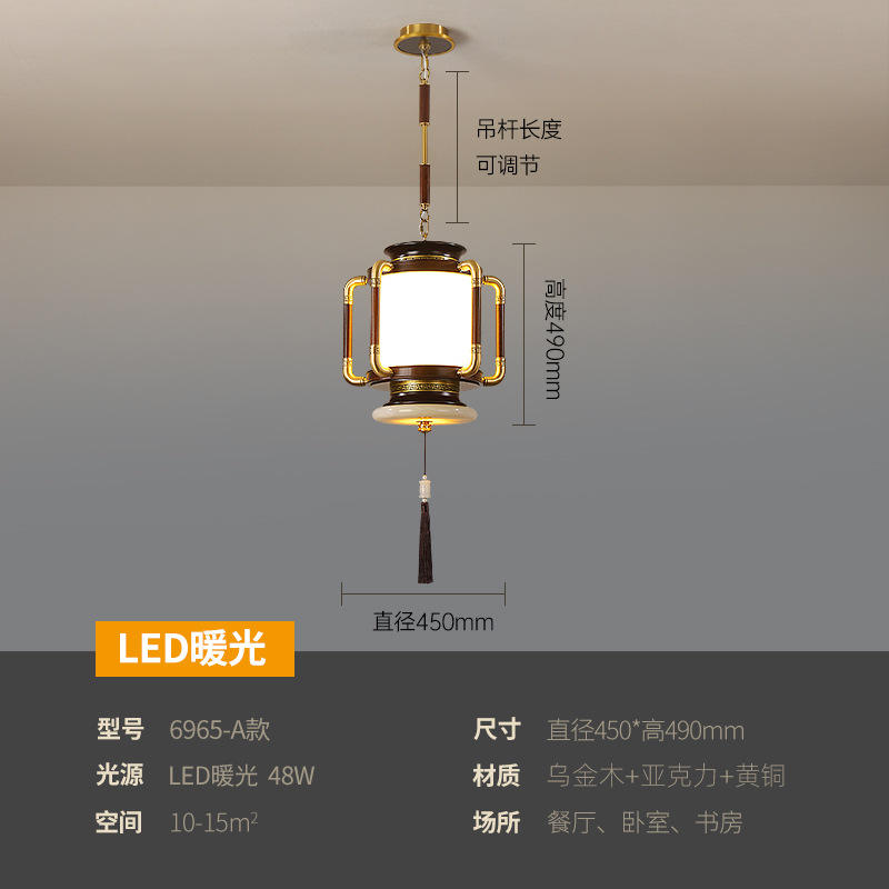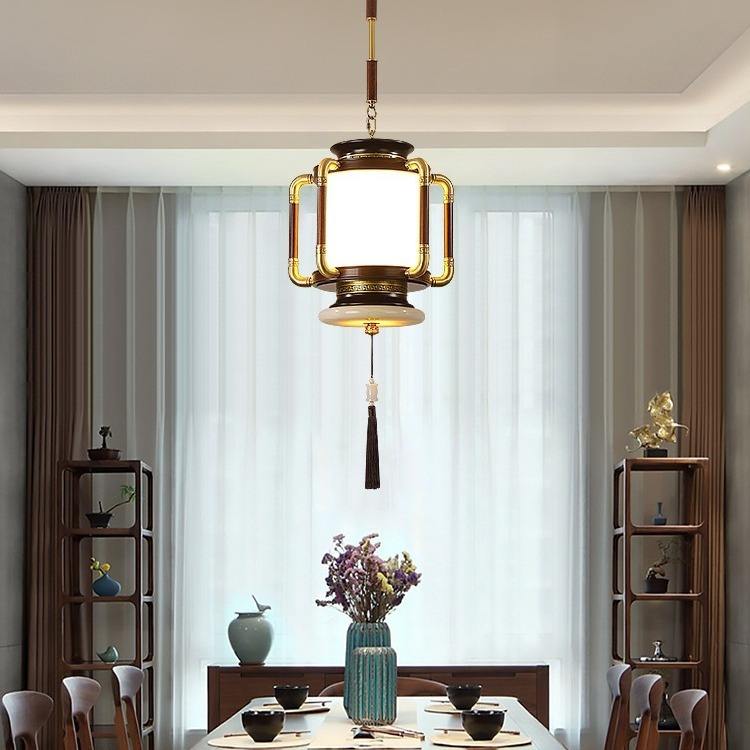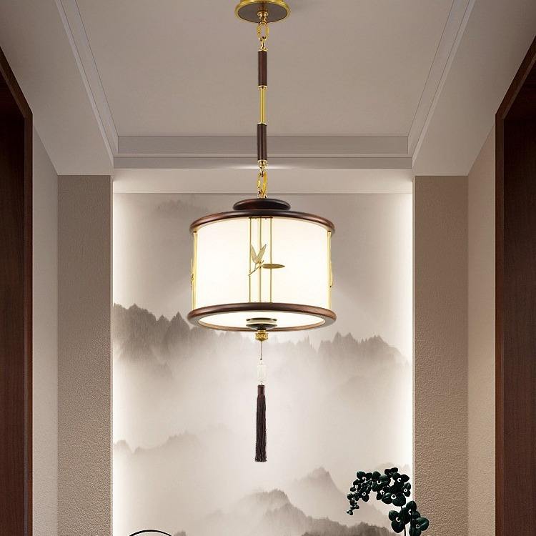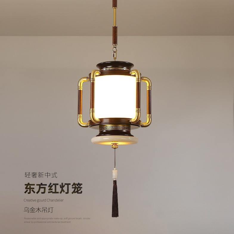 Lámpara Colgante de Estilo Chino Totalmente en Cobre para Comedor, Inspirada en el Zen, para Entrada, Pasillo, Escalera, de Madera de Ébano