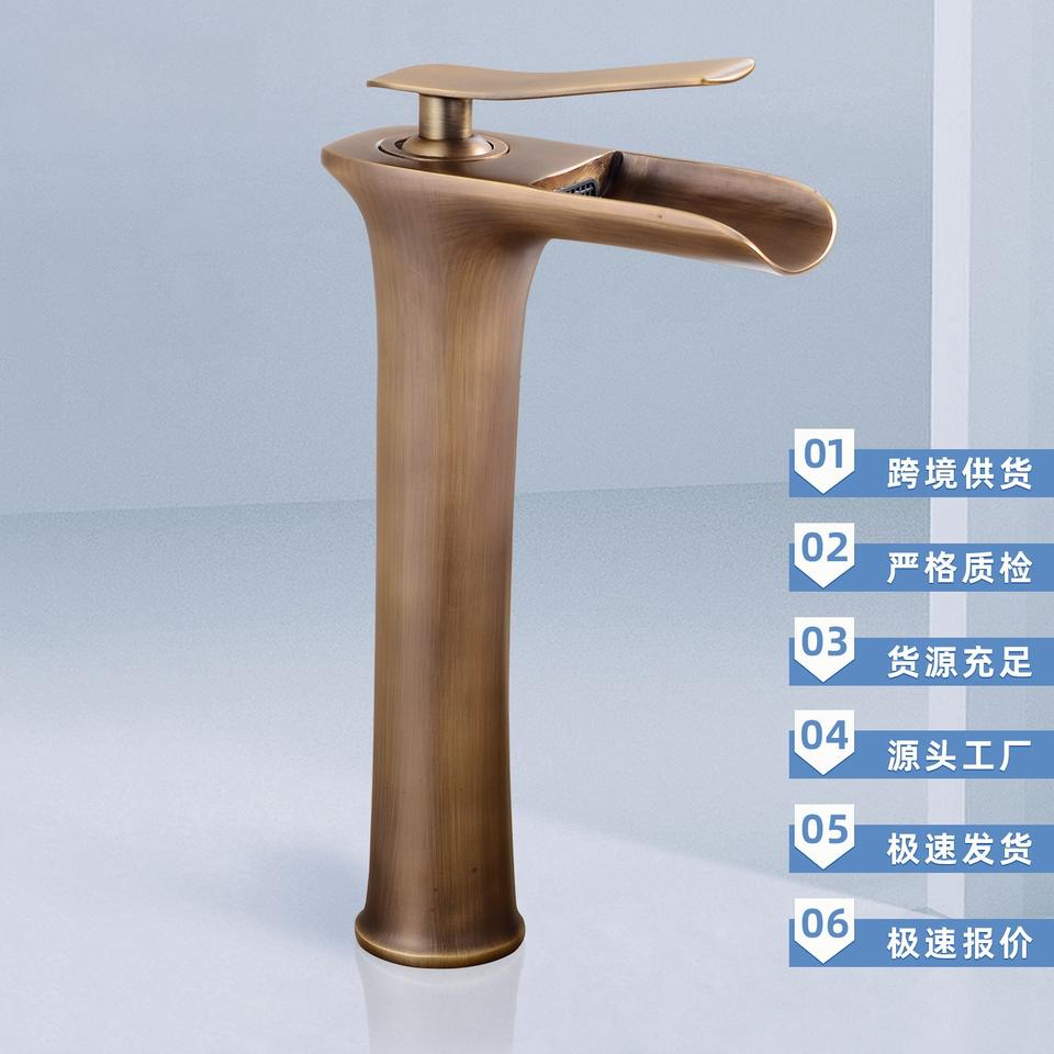 Grifo de cascada retro de cobre, montaje en cubierta, válvula de cerámica, diseño rústico, grifo para lavabo de baño, agua fría y caliente