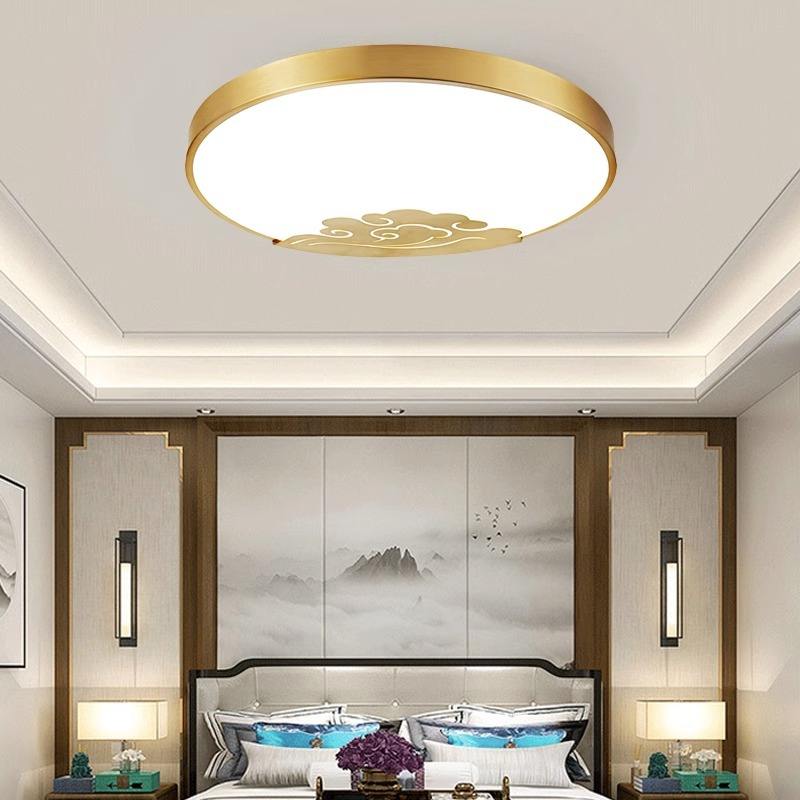 Lámpara de Techo LED Ultrafina de Cobre, Diseño de Nube Auspiciosa de Inspiración Zen, Estilo Chino Moderno para Dormitorio, Estudio y Otras Habitaciones