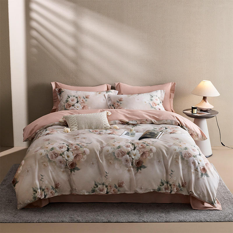 Juego de Edredón de Algodón y Lana Resistente al Agua de 300 Hilos, Cuatro Piezas, Tamaños Individual/Doble, Compra en Grupo para Dormitorios