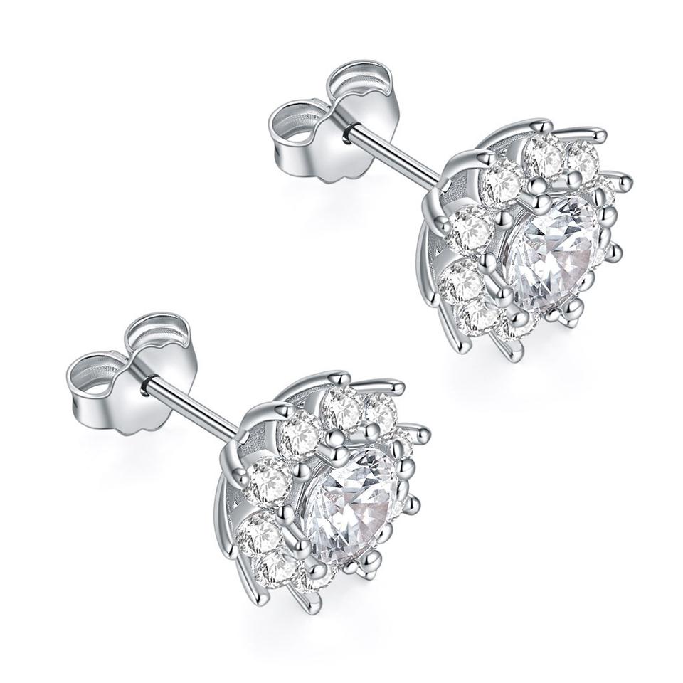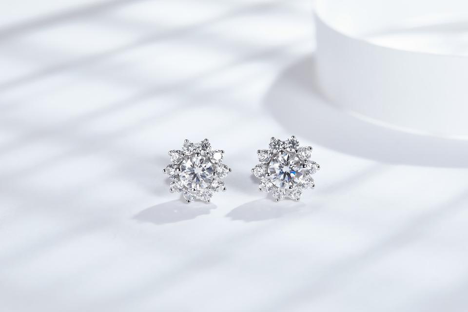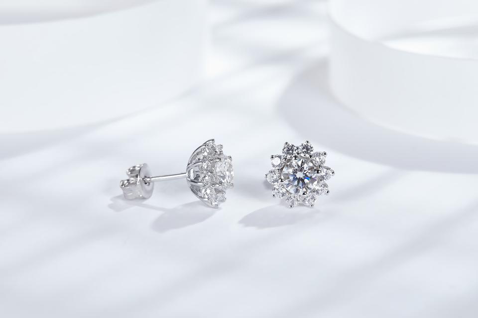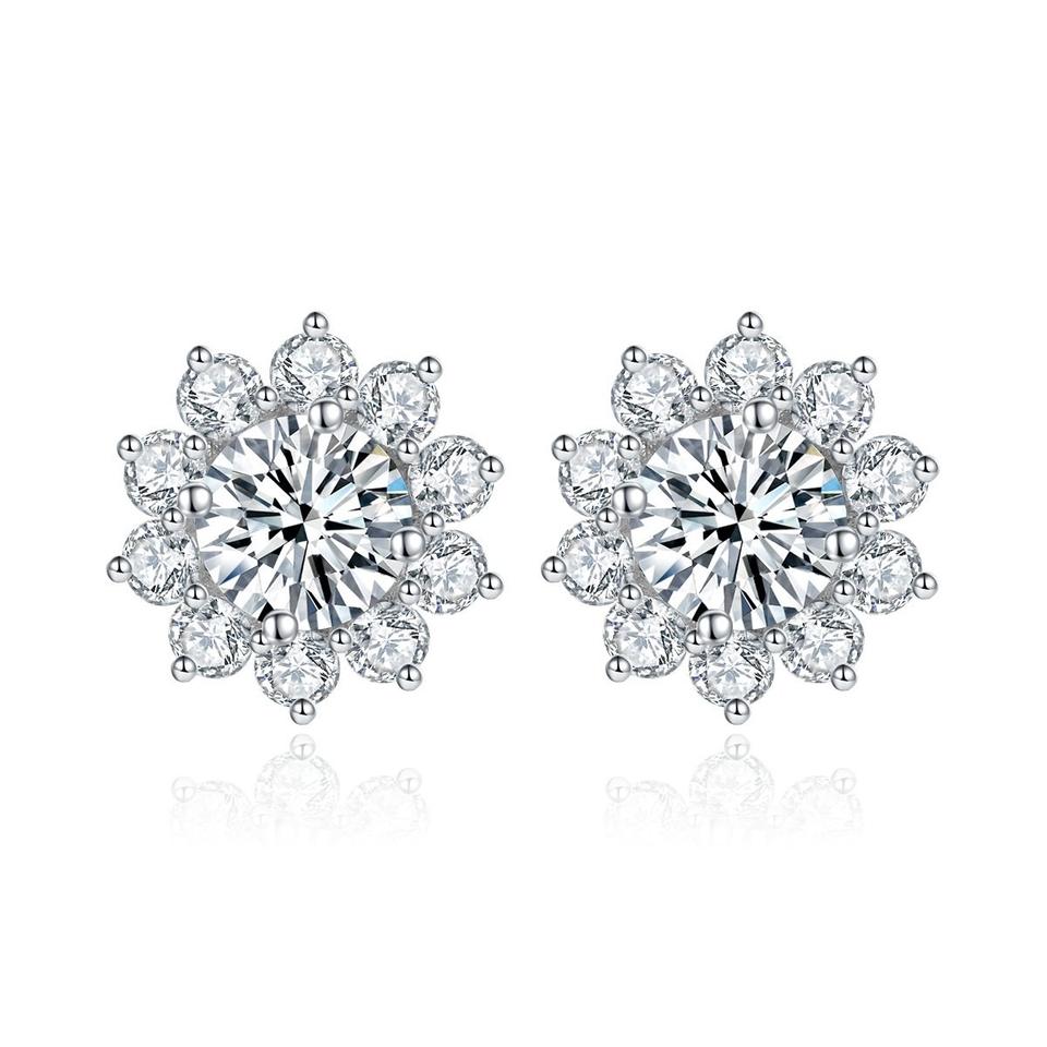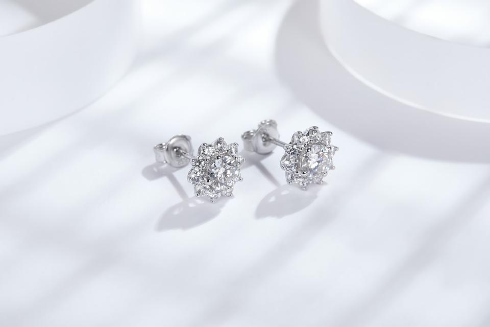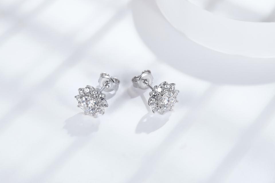 Pendientes de botón de girasol de moda chapados en rodio y oro con moissanita y diseño de lujo en forma de llave