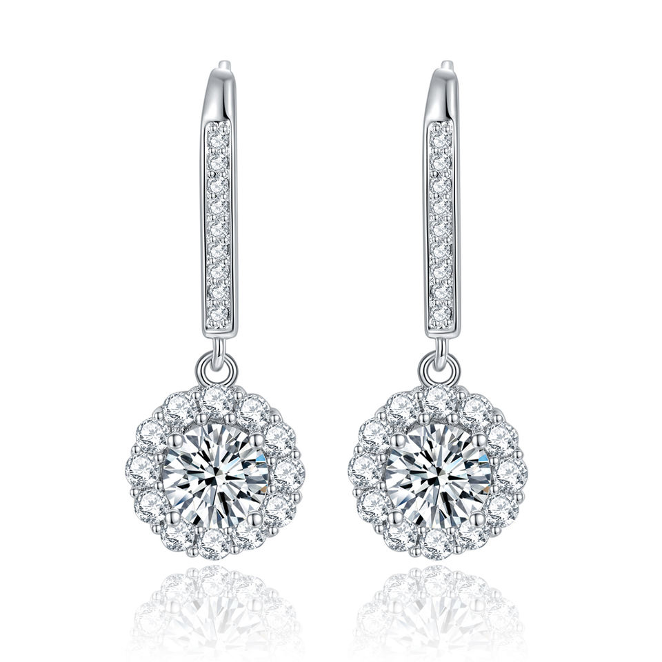 Pendientes Colgantes de Aleación de Estaño con Baño de Rodio y Titanio, con Moissanita Suelta Mixta en Forma de Llave y Corte Esmeralda, Decorativos para Aniversario