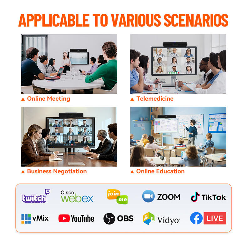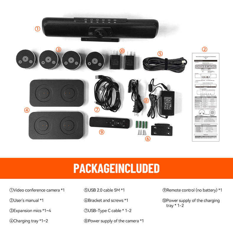 Sistema de videoconferencia inalámbrico 4K todo en uno con encuadre automático inteligente y altavoz de micrófono compatible con BYOM para salas de reuniones