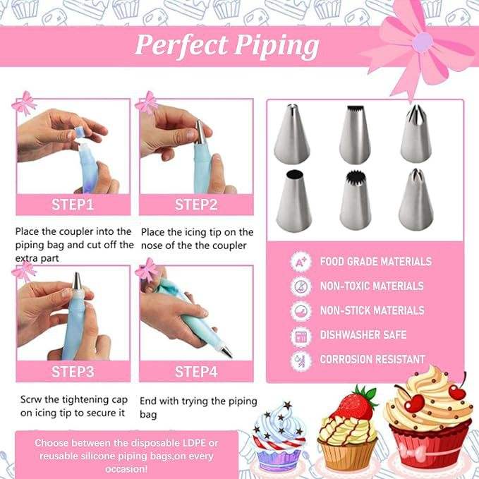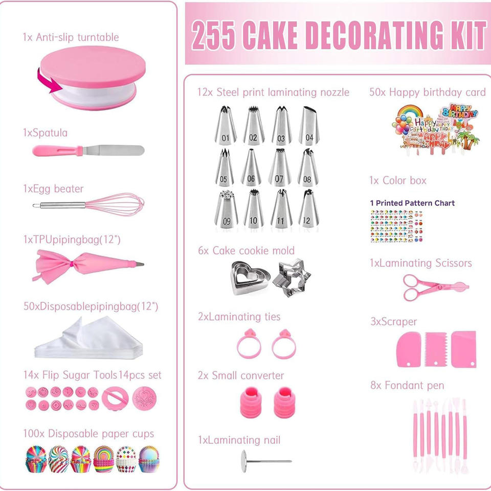 Kit de decoración de pasteles todo en uno con boquillas de repostería, accesorios para plato giratorio y herramientas de repostería para chefs de pastelería.