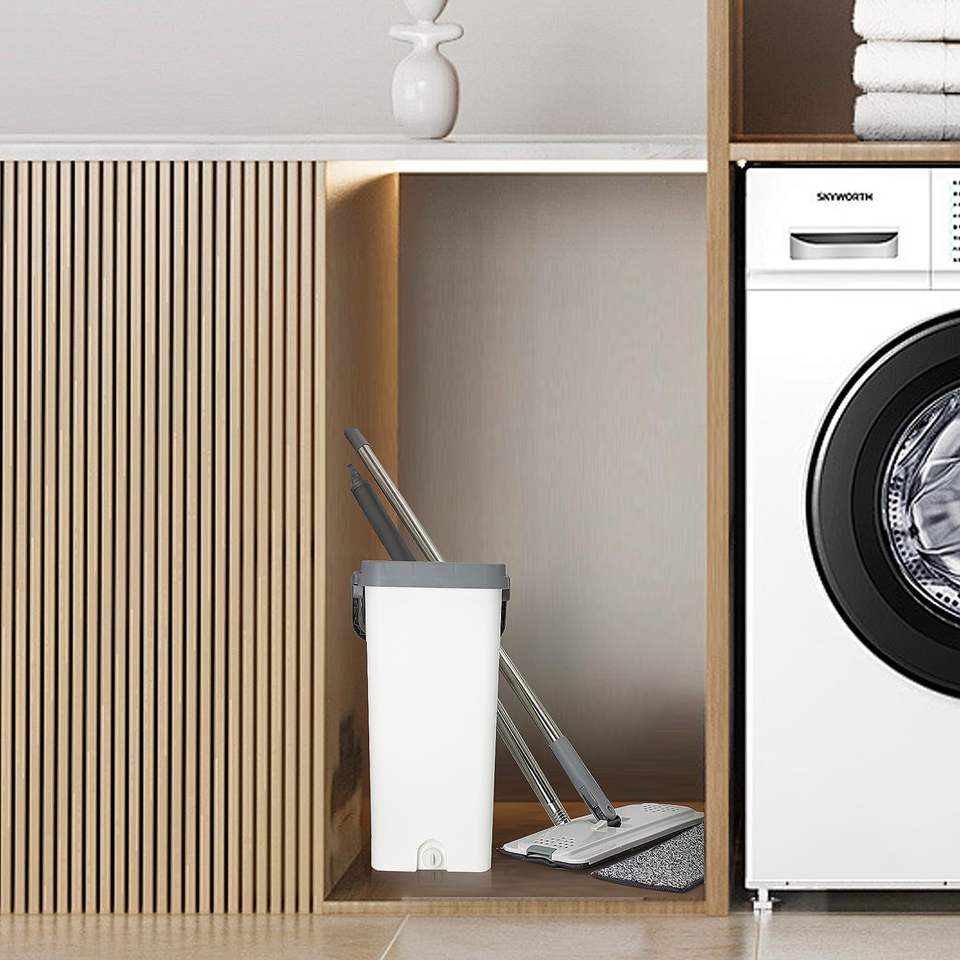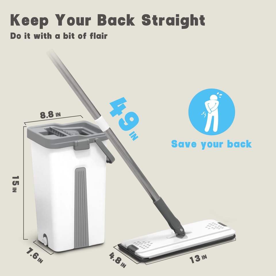 Sistema de limpieza de pisos para el hogar con todo incluido, fregona de piso plano con manos libres, cubo lavable, almohadillas de microfibra, uso en seco y húmedo, todo tipo de pisos