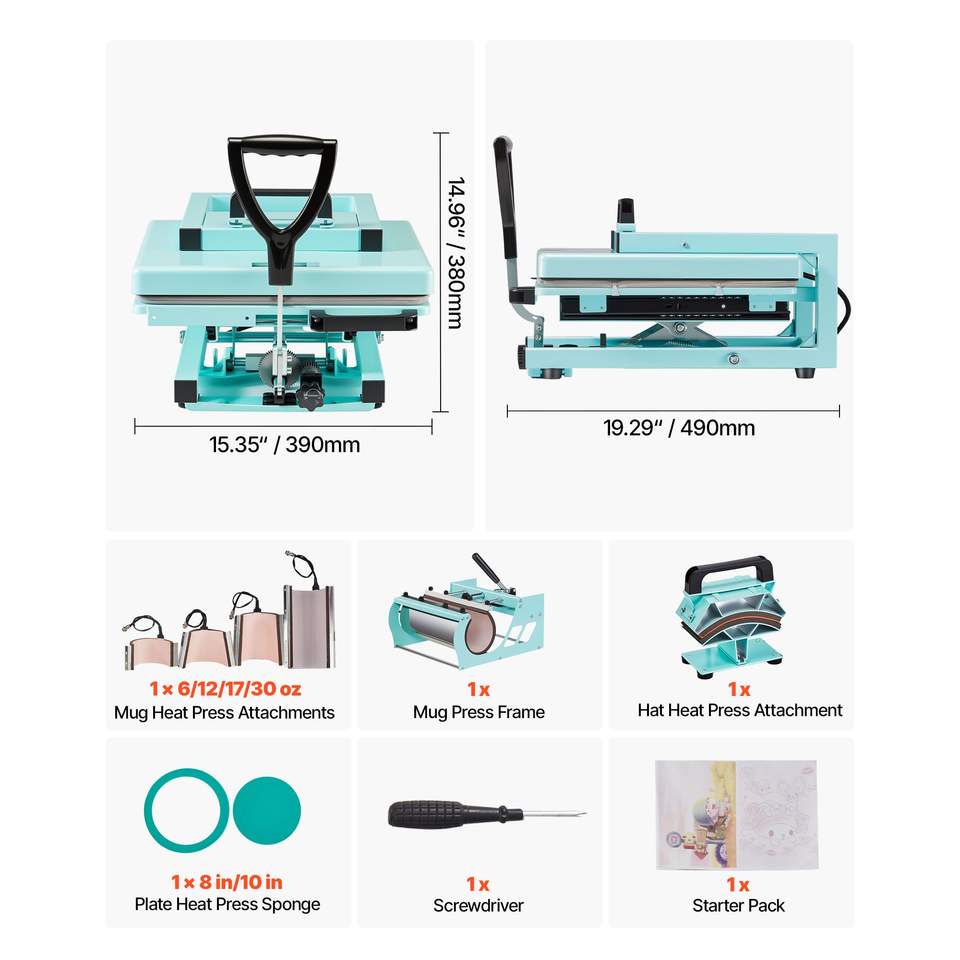 Nueva Máquina de Prensa de Calor Híbrida Multifunción 8 en 1 de 15 x 15 Pulgadas con Calor Rápido y Uniforme, Fácil Control y Diseño Patentado Sublima