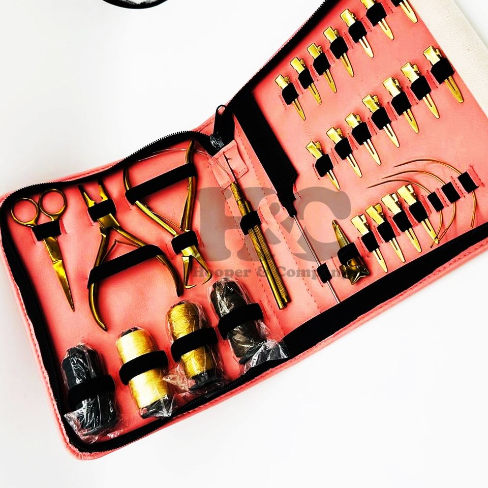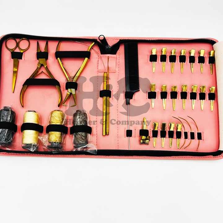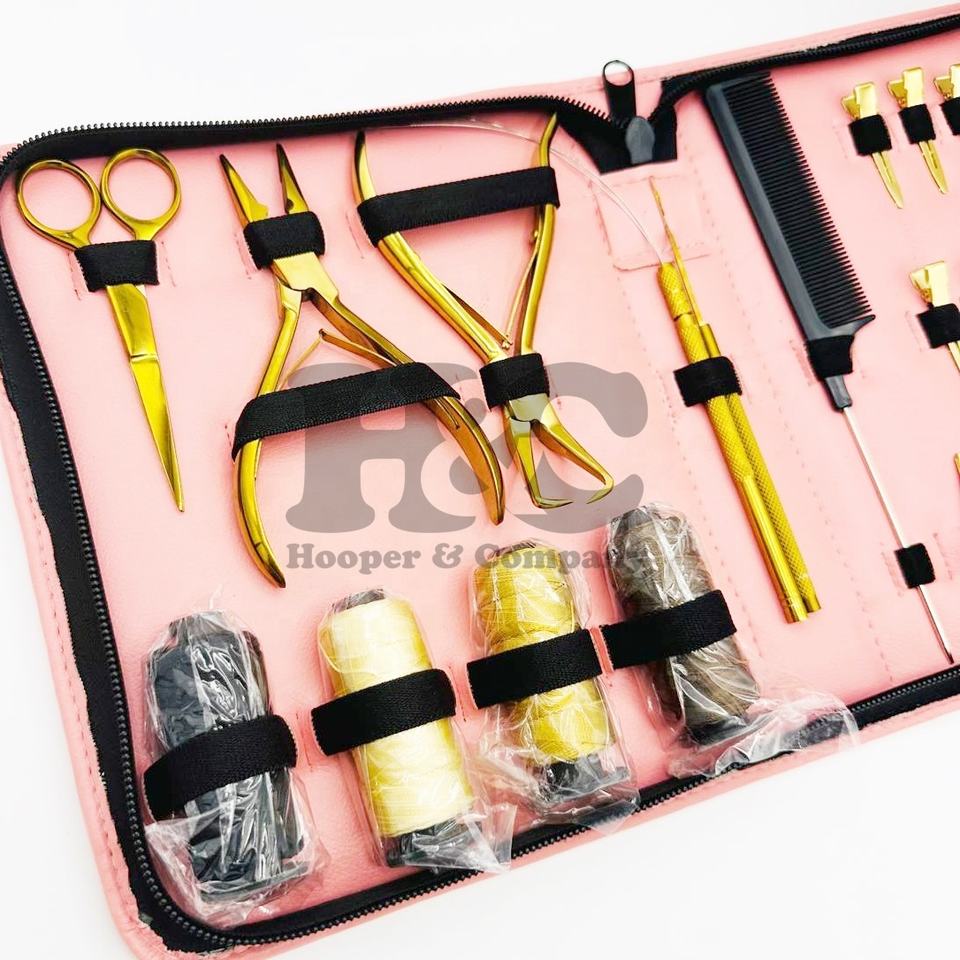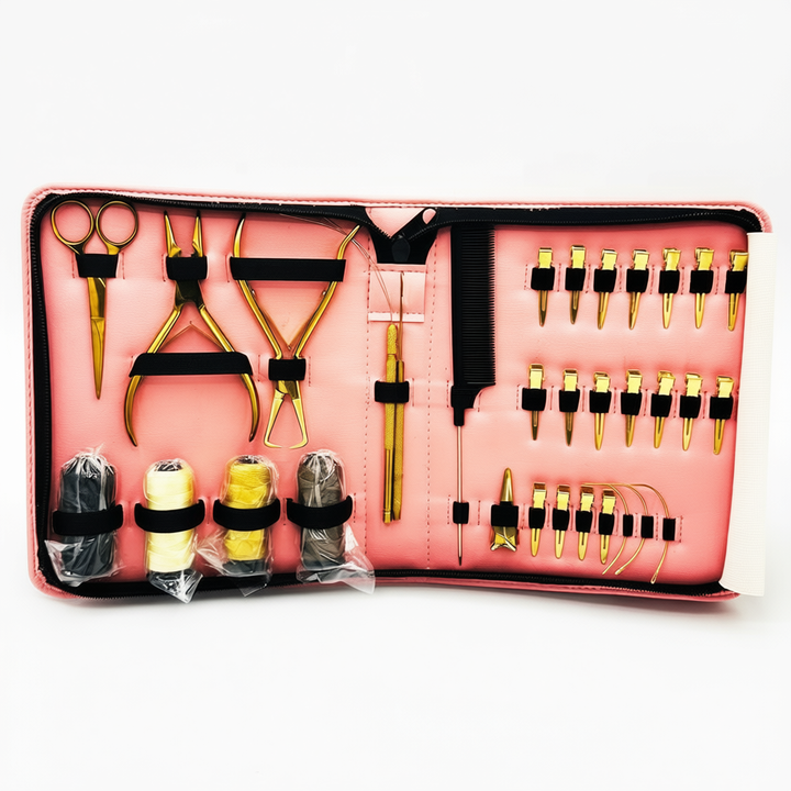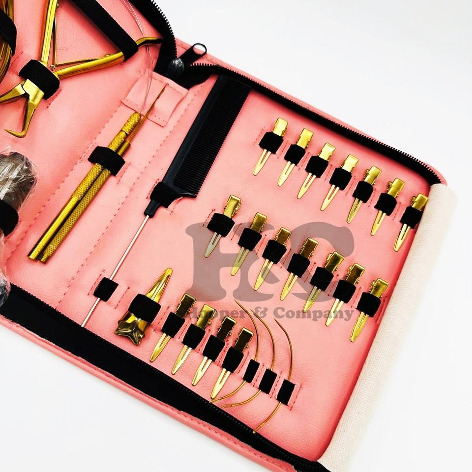 Kit de Herramientas para Extensiones de Cabello con Sistema de Unión Manual, OFERTA, Acero Inoxidable Dorado Sostenible, Estuche Rosa, Alicates, Tijeras, Kit Comercial para Cabello