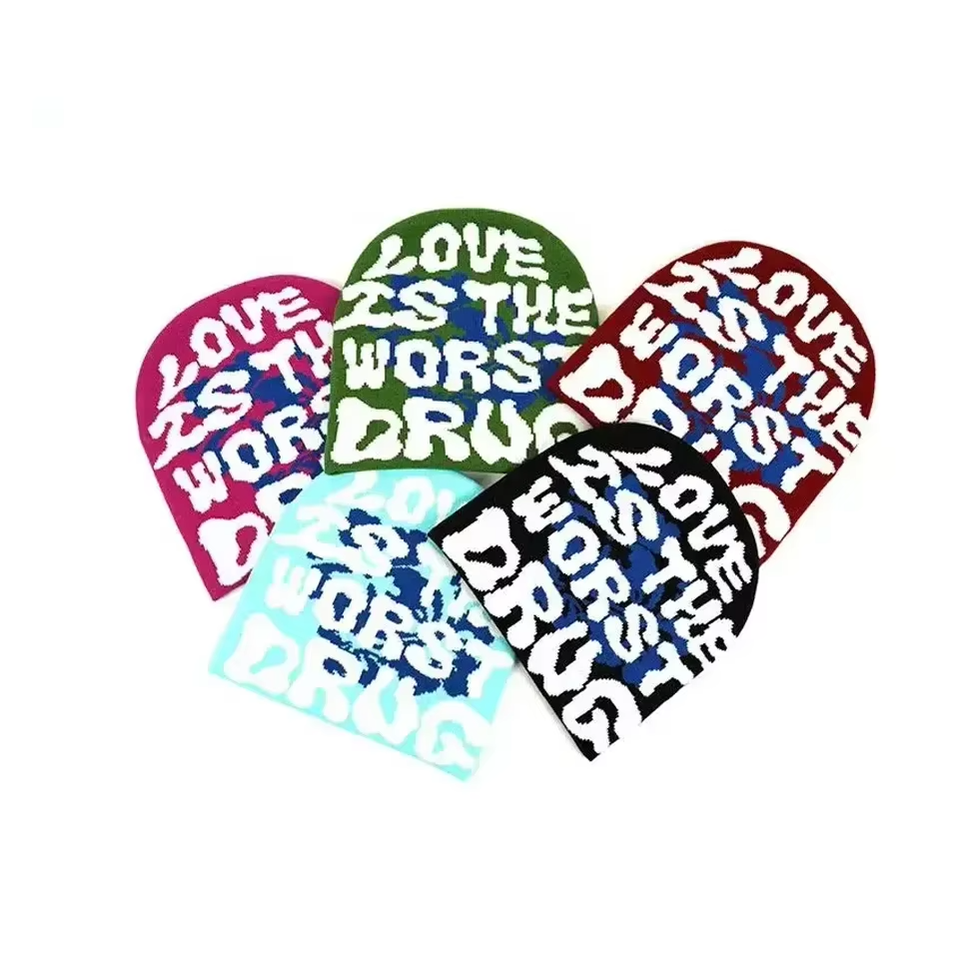 Gorro de Punto con Estampado de Letras, Estilo Urbano, Cálido para Invierno, Diseño Gráfico, Unisex para Hombre y Mujer, Gorros Jacquard
