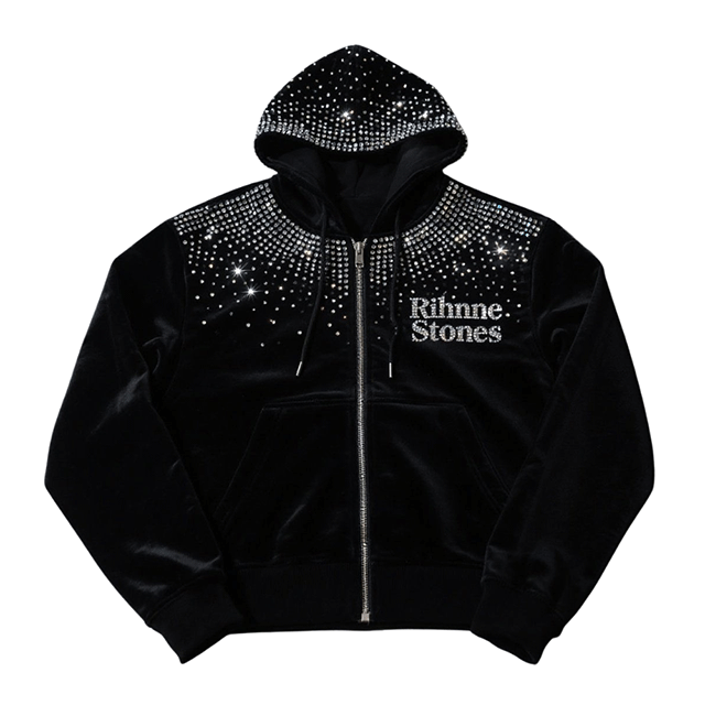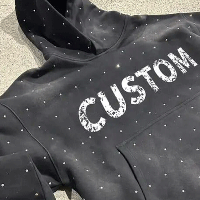 Sudadera con capucha negra para hombre con diseño personalizado de diamantes de imitación en toda la prenda, estilo color-block, de algodón mezclado, básica, para hombre.