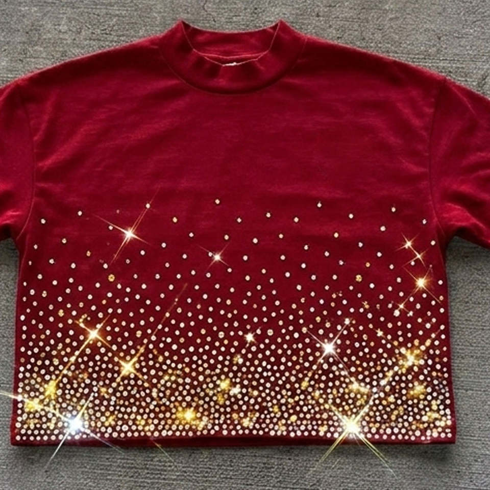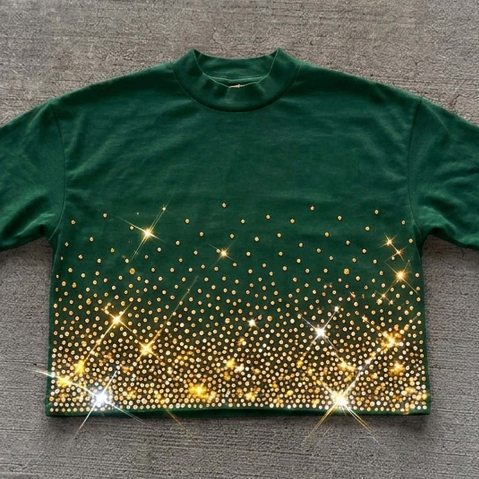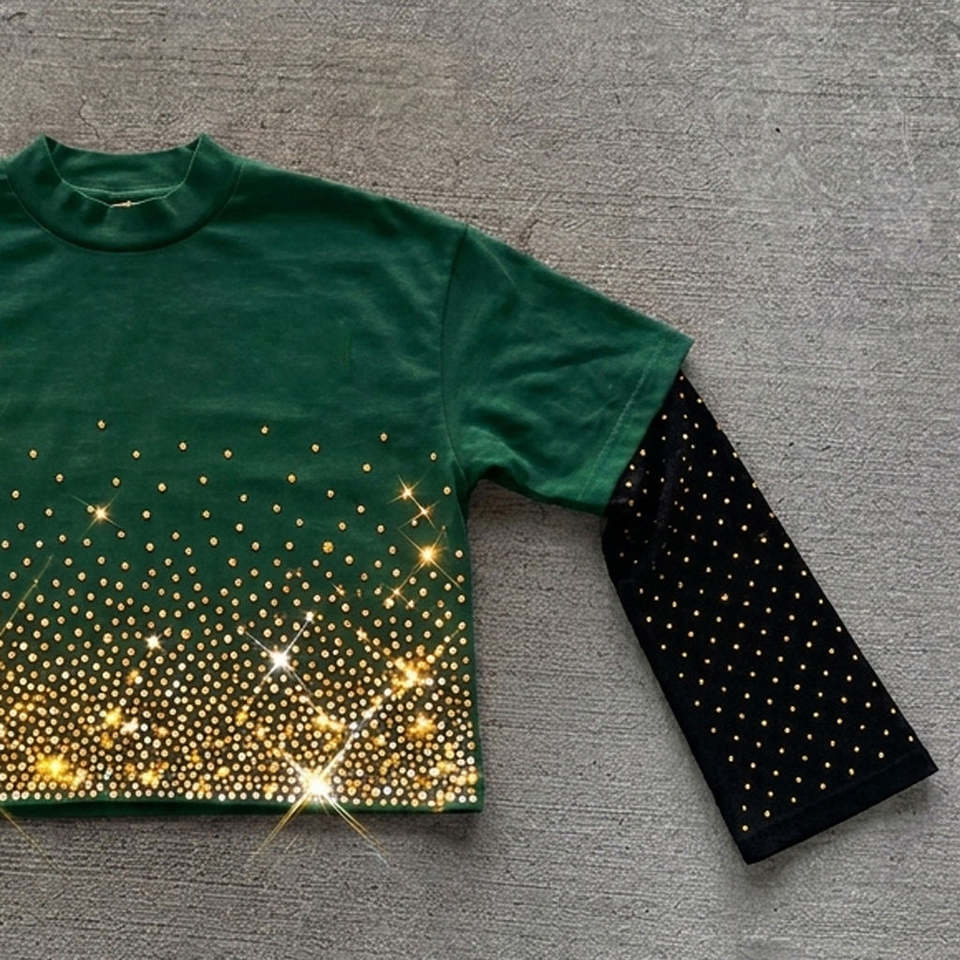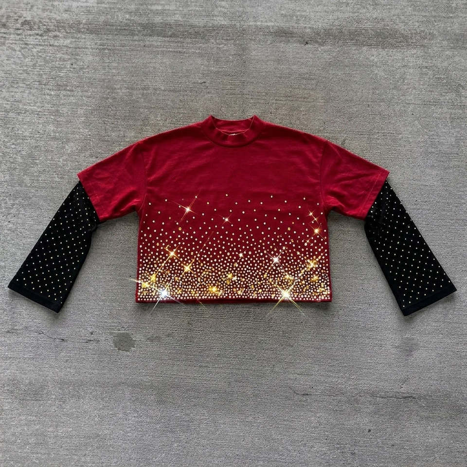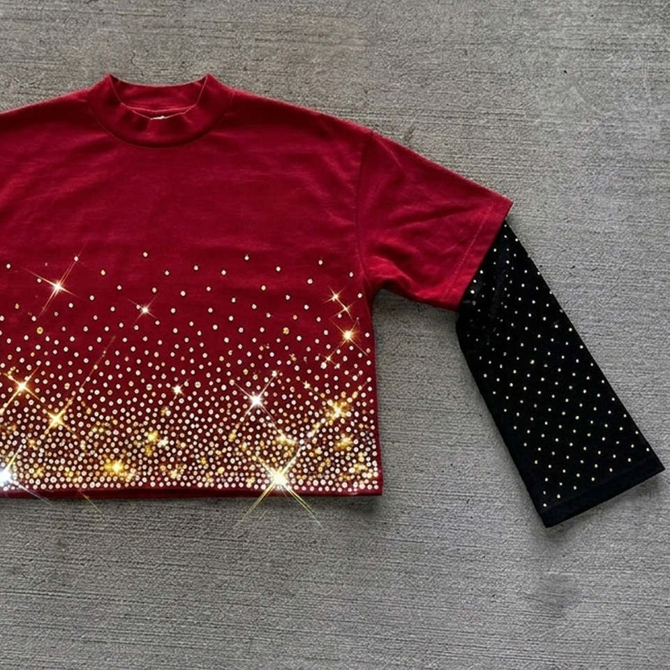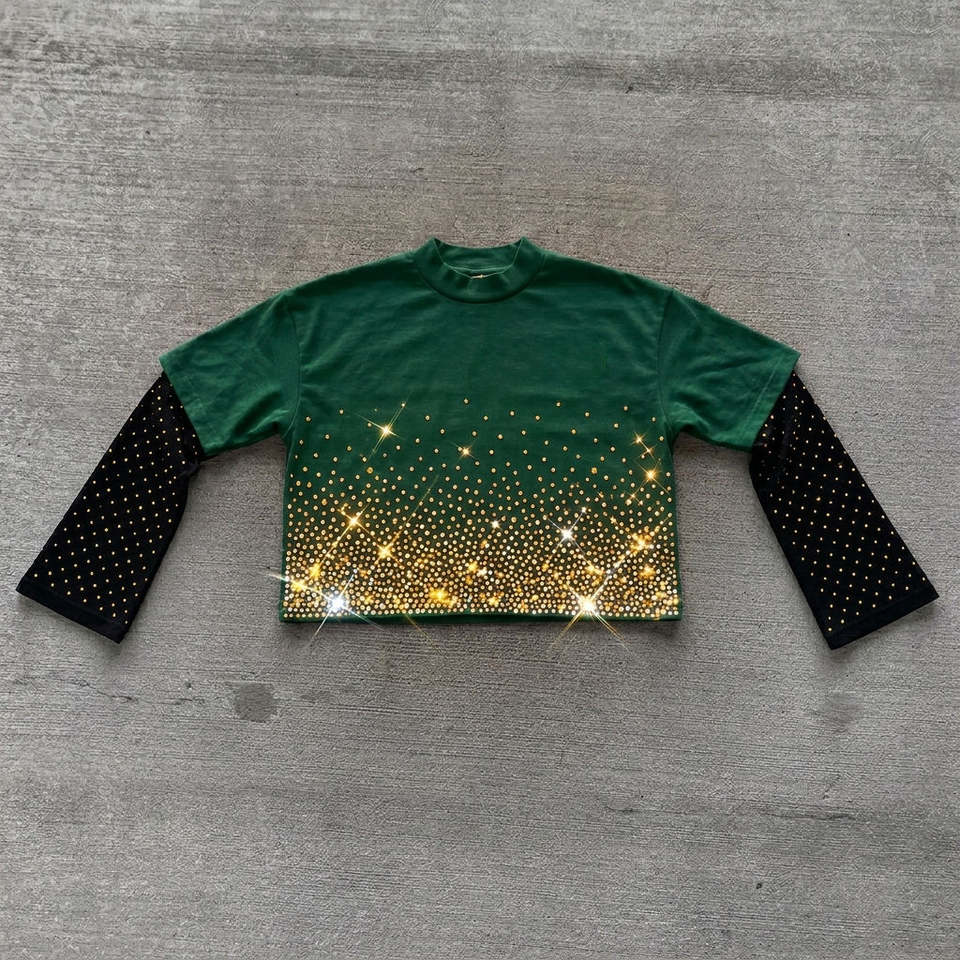 Camiseta de doble capa con pedrería en toda la prenda, unisex, de manga larga, 2 en 1, camiseta de doble capa extragrande para verano.