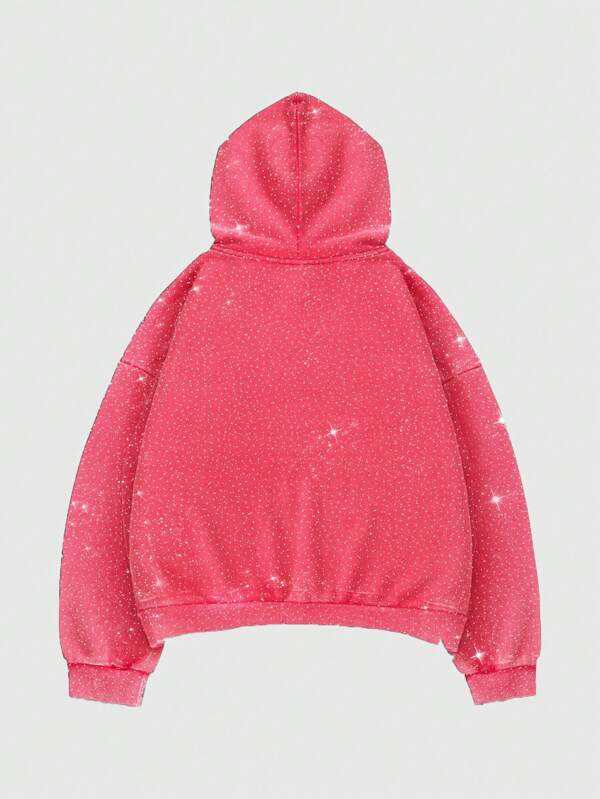 Sudaderas con Capucha de Algodón y Forro Polar con Pedrería en Toda la Superficie, Estilo Oversize para Hombre, Acabado Brillante, Suministro de Marca Personalizada para Streetwear